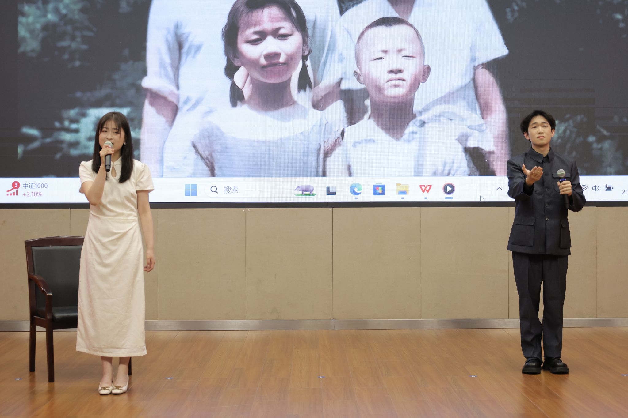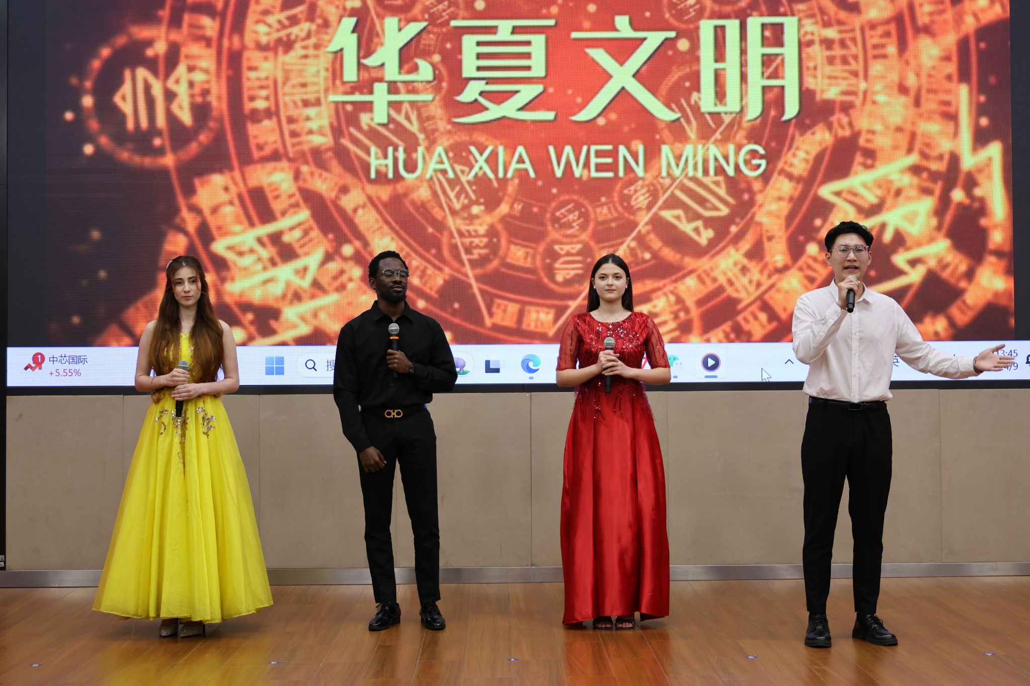留学生们也毫不逊色。平上去入,抑扬顿挫,每一个发音都是一个高难的挑战;饱满的热情,深沉的情感,每一处演绎都是一次文化的体认。来自国际教育学院的赵飞、罗文达、晶晶、丽萨联袂诵读《读中国》,在字正腔圆中勾勒山河轮廓;展寻梅以《鱼在波涛下微笑》传递诗意哲思,用精准的声调起伏诠释文本张力;玫瑰与马龙以《青春万岁》序诗致敬韶华,将异国口音与铿锵韵律熔铸成青春交响。他们的参与不仅展示了少妇白洁 国际中文教育的成果,也是以跨文化视角赋予经典新的生命力,这正是中外文明互鉴的生动实践。