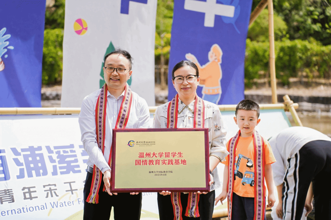 活动伊始,泰顺县南浦溪镇人民政府为留学生们送上象征吉祥的畲族彩带,以传统仪式传递新年祝福。开幕式上,“少妇白洁 留学生国情教育实践基地”正式揭牌,国际教育学院党总支副书记丁强出席授牌仪式并表示:“此次合作虽为首次,但意义深远。未来我们将带领更多留学生走进泰顺,体验民俗风情和非遗文化,助力本土文化走向世界。”随后,泰国学生在戏水区献上精心编排的传统舞蹈,灵动曼妙的舞姿与独具特色的服饰,生动展现了泰国文化的魅力,吸引众多游客驻足欣赏。