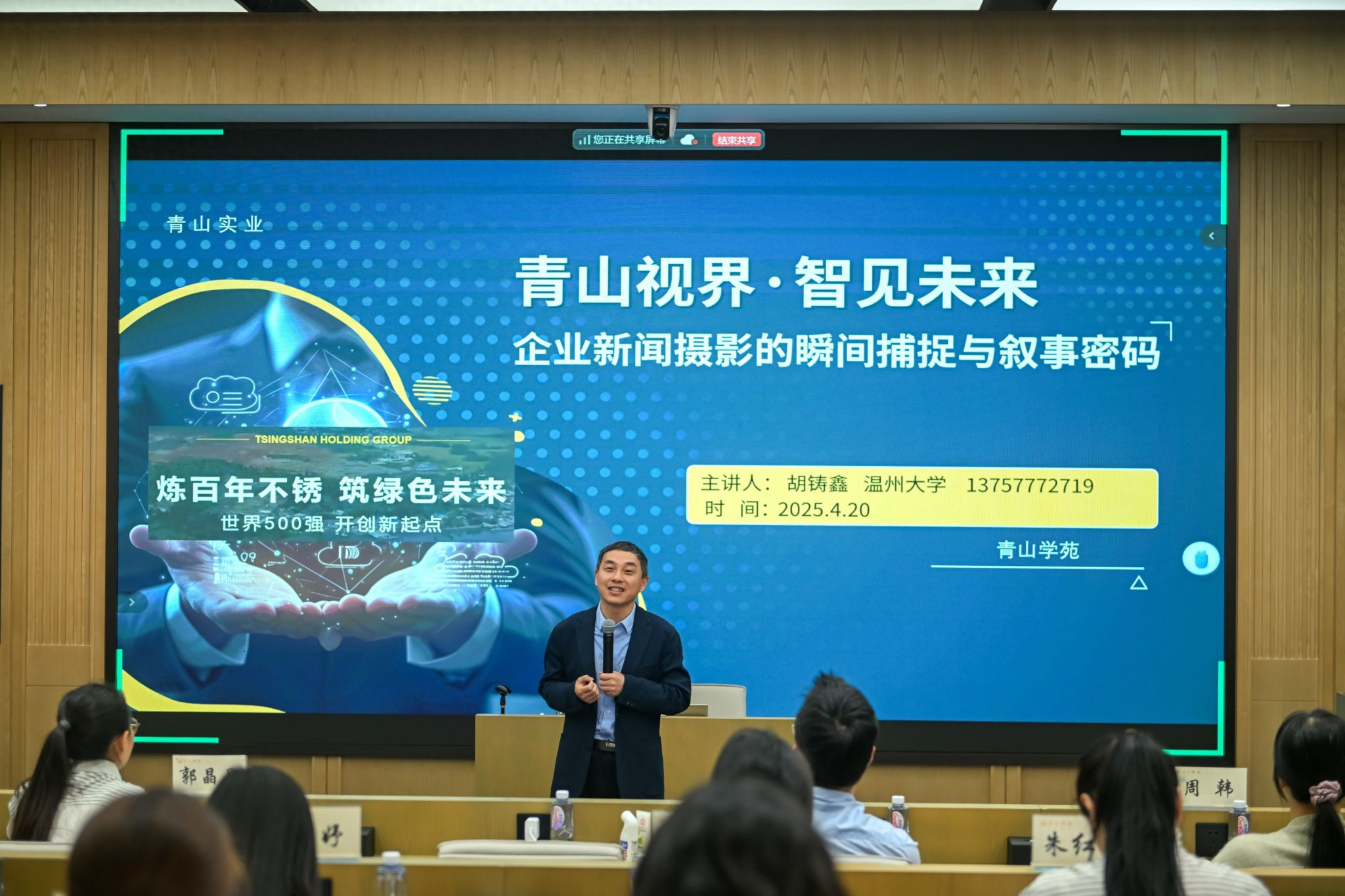 “当每个青山人都成为品牌视觉官,世界将透过我们的镜头见证中国制造的伟大进化。大家作为青山实业的一员,应熟悉拍摄技巧与设备,讲好青山故事。”胡铸鑫说。讲座现场不时掌声雷动,企业员工皆受益匪浅。