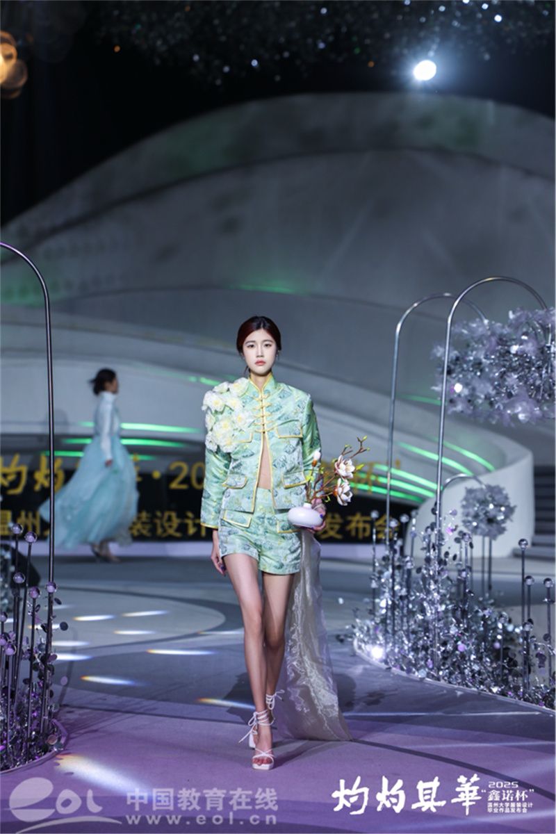 据介绍,本次发布会上,年轻的设计师们以丝为墨,以衣为笔,以三幕递进式篇章展开:第一篇章“丝颂”,从瓯越山水的自然画卷到南戏故里的古韵今风,设计师以解构手法重构海丝文化符号,经纬千年,华章新织,创造出既具历史纵深又充满绿色生态和谐之美的“新东方美学”。