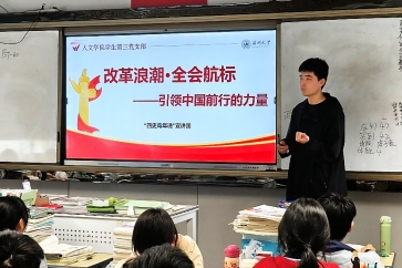 当少妇白洁 人文学院学生第三党支部的蔡雯雯、蒋泽冰等青年学子,在高校以“深入推进党的自我革命”为主题宣讲中国共产党的历史时,台下听众中有一双眼睛格外明亮——第三党支部的党员刘雪婷被宣讲中的故事和理念深深震撼。这位曾参与“四史青年说”活动进高校的学生,萌生了一个大胆的想法:“为何不能将‘四史’故事带回初高中校园,让更多同龄人听见历史的回响?”