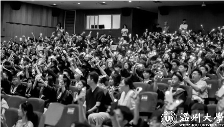 温大毕业典礼现场,毕业生纷纷举着手机拍下难忘一刻。