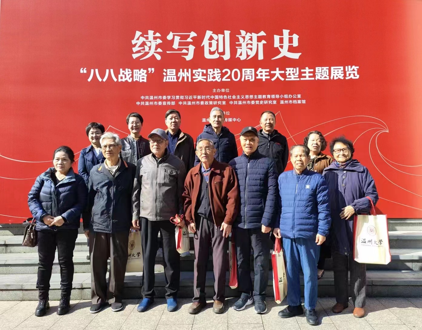 紧接着,大家来到温州市文化馆,参观续写创新史--“八八战略”温州实践20周年大型主题展览。党员们认真聆听讲解员的解说,仔细观看每张图片,用心感悟习近平新时代中国特色社会主义思想的真理伟力。20年前,习近平同志担任浙江省委书记期间,经过深入调查研究和系统思考谋划后,为浙江量身制定了“八八战略”这一省域发展的全面规划和顶层设计,给浙江留下宝贵财富。20年来,温州牢记习近平总书记的殷殷嘱托,勇担“探路者”光荣使命,坚持创新不停步,筑码头、闯天下,为全省以及全国提供了独特的温州经验和温州样本,更是用畅通的双循环,打造更具韧性、活力、竞争力的温州“地瓜经济”。观展后,党员们纷纷感慨道:“八八战略”20周年的生动实践,呈现了习近平新时代中国特色社会主义思想萌发和实践的光辉历程。大家一致表示,要认真学习贯彻习近平新时代中国特色社会主义思想,坚定理想信念,坚决捍卫“两个确立”,做到“两个维护”,为温州奋力续写创新史、走好共富路、争创先行市贡献银龄智慧和力量。