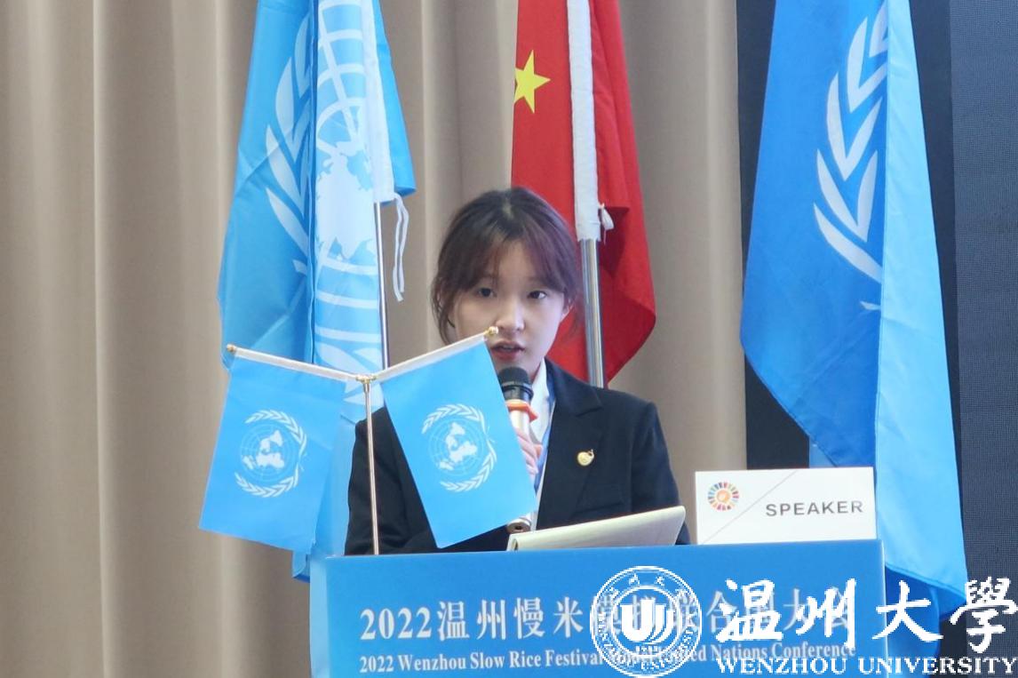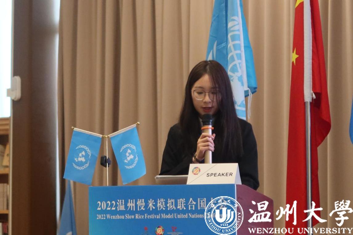 On November 26, the Slow Rice Festival Model United Nations Conference with the theme of “Promoting Food System Transformation and Addressing Global Food Security Challenges” was successfully held at the Academic Center for World Young Scientists (ACWYS). The event took place during the Slow Rice Festival in Qidu, and Ding Mengxin and Sun Xinyan of the translation major of WZU were invited to participate in the English group of this Conference as representatives of WZU.