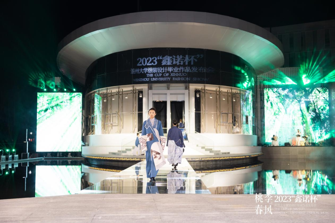 With light, spring breeze, and gentle waves, on the evening of April 20th, a unique fashion show cum graduation project show was held on the water runway of Wenzhou University Art Museum, which was rare compared with previous ones.