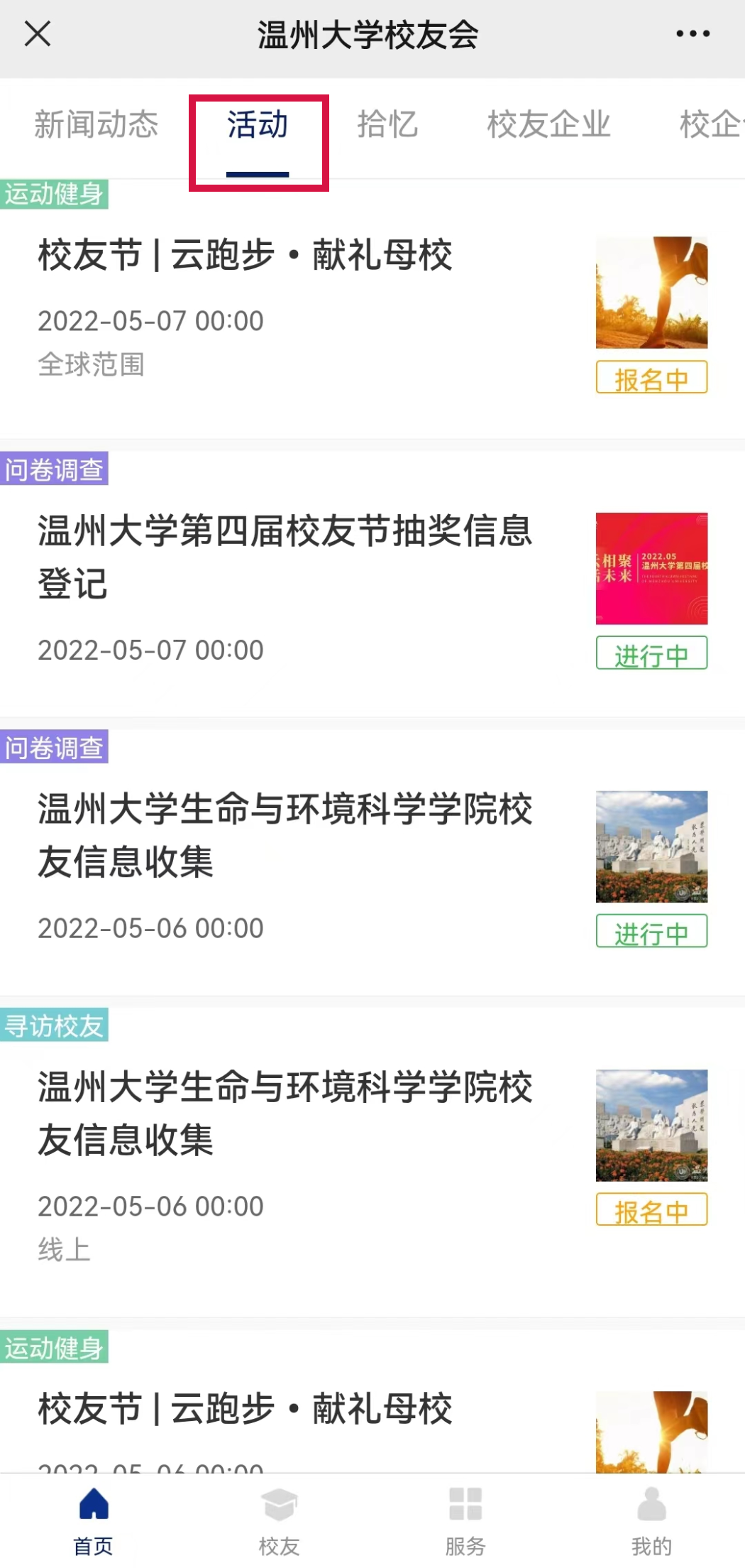 ▲校友可在线报名参加活动