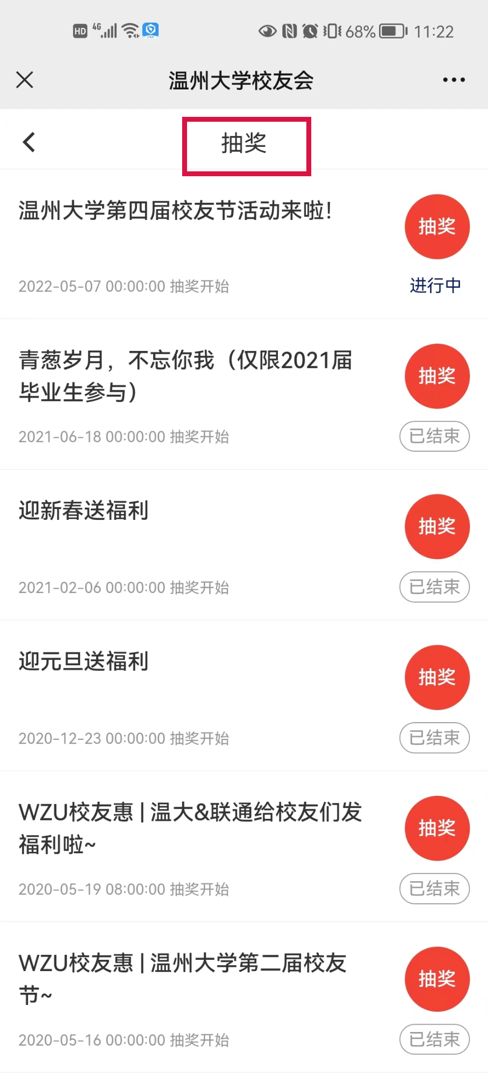 ▲校友可以参加线上抽奖活动