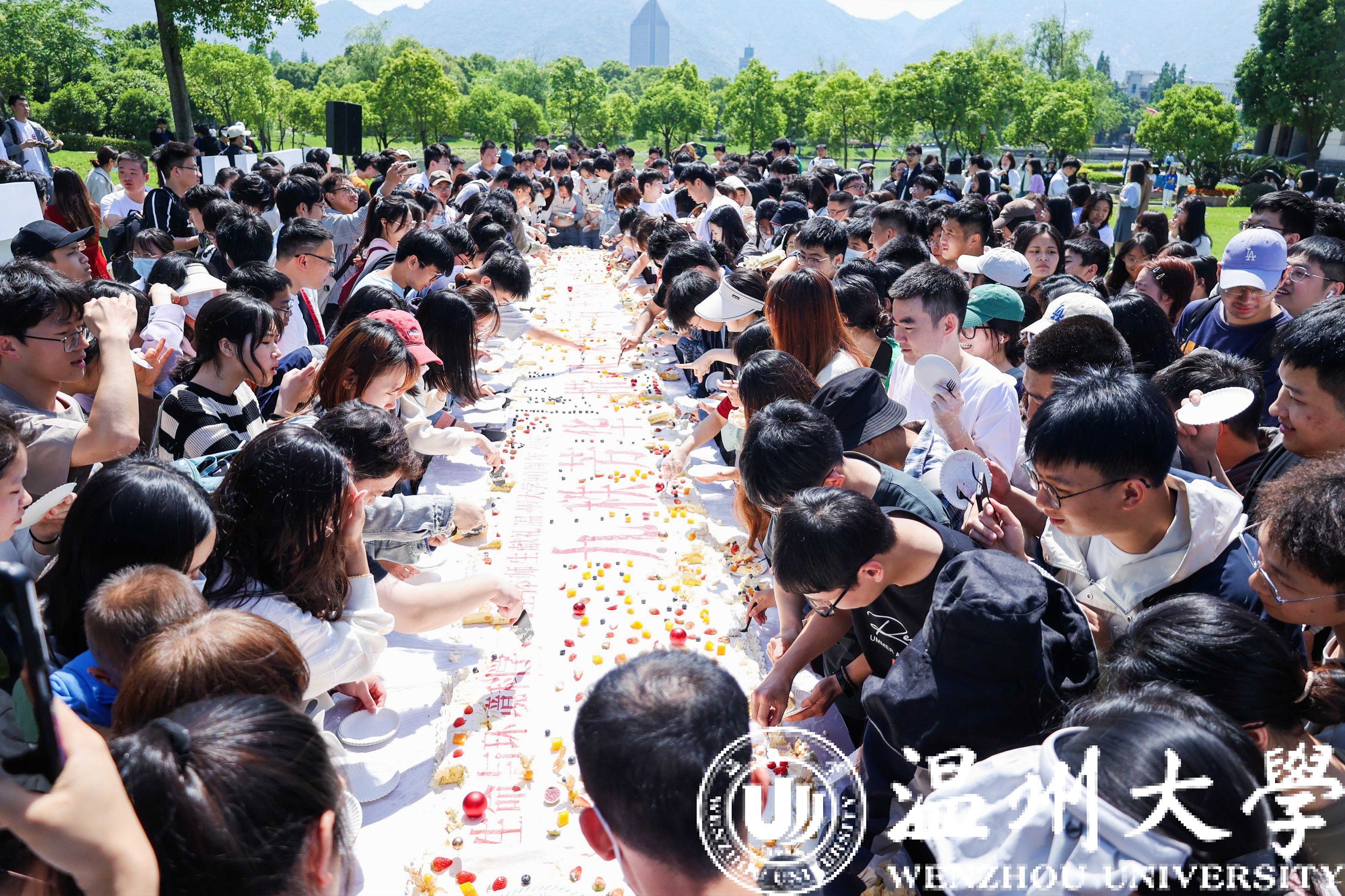 “第一次吃到这么大、这么好吃的蛋糕,一同庆生,共同成长,是一场最美、最幸福的遇见!”一位在现场吃蛋糕的同学兴奋地说,“我的成长离不开母校的培养,很荣幸能够见证温大的90周年校庆,祝温大的未来画卷更加辉煌,我们和母校的故事‘久久’流长!”