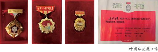 叶明珠是把老师和同学们的赠言,铭刻在心坎上,作为不断前进动力的。她全身心扑在教育事业上,从教35年,为事业甘苦备尝,视学生犹如子女,受到学生和学生家长的信任。她任教班级的学生人数,最多时竞有76人。她以普师的学历、小学老师的岗位,取得中学高级教师的职称;当选省、市人大代表,获得全国优秀班主任的殊荣。可以说,她没有辜负老师的教诲,同学的勉励。
