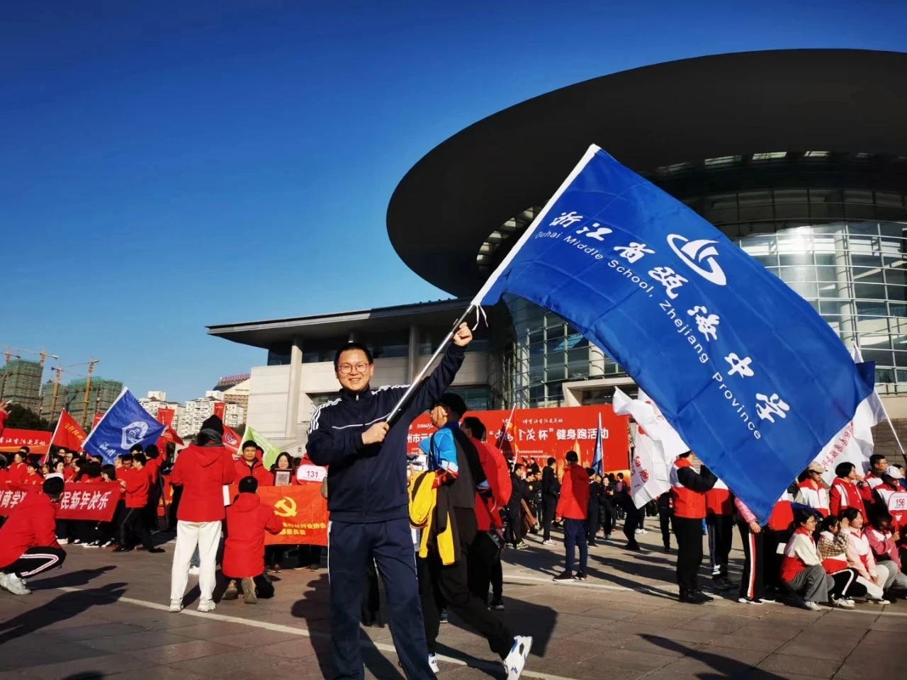 到了瓯海中学,我也在寝室里住了4年,每天也是哼着小调回到寝室。早上5点多起床跟学生晨跑。我每天早上一早就坐在教室里面,看自己的书,写自己的东西,备自己的课,做孩子的榜样。老师非常安静地坐在这里做自己的工作,大家也要专注地去钻研自己的学识。