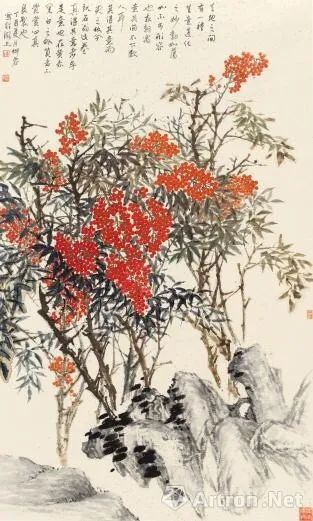 《西湖山果》作品表现了杭州特色的南天竹,在经过严冬寒雪之后的春天,展现出勃勃生机、色彩斑斓的美丽景象。源于灵峰探梅途中所见产生的灵感,用笔生动、造型严谨,色彩沉着稳重,构图穿插在平淡中见变化,笔墨爽劲中蕴温婉。她倾心于画作,把对前人的敬仰,对传统的理解、对生活的感受,通过自己的艺术语言表达出来,用最完美的艺术手法诠释其对作品赋予的独特魅力。