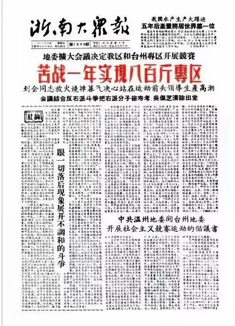 然而年底,一场政治灾难突然降临!在全体机关干部大会上,专署一把手宣布他为“右派”并开除党籍,另一名“右派”是时任温州地区副专员的浙南老干部徐寿考,此事还登了《浙南大众报》。至于原因,他后来回忆,可能是对1956年“匈牙利事件”讲了几句自己的想法。