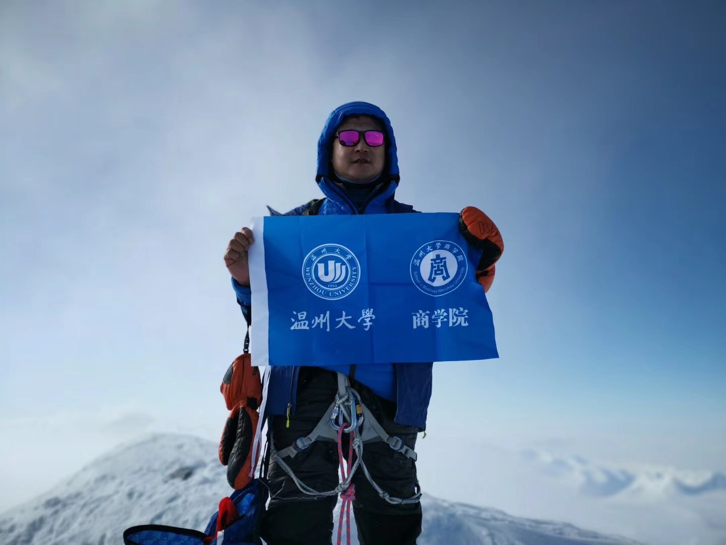 2018年12月6日北京时间凌晨五点四十分,商学院校友会会长、91级财会专业校友王仲辉先生成功登顶南极洲最高峰——文森峰。据悉,本次登山是继王仲辉先生去年5月22日上午6:30分成功登顶珠峰8848后又一次挑战人类极限,也是“7+2”极地探险的第八站。王仲辉曾以一个创业者和冒险家的角度出发,讲述自己登上南极、北极和珠峰的经历,他用自己的行动诠释着“敢为人先”的温大精神。