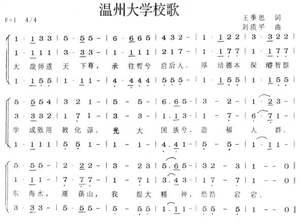 第八十四条 学校校歌沿用温州师范学校1945年的校歌(王季思作词,刘质平作曲)。
