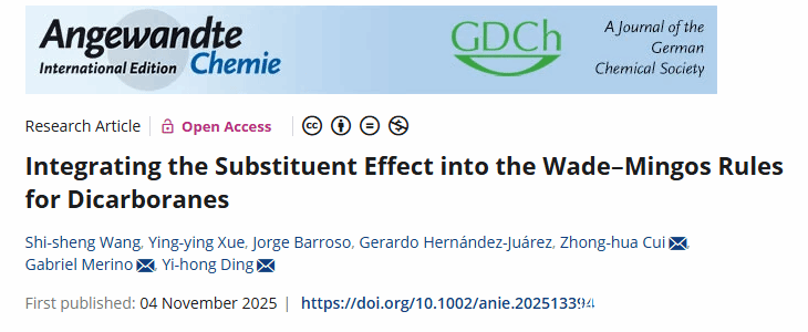近日,温州大学化学与材料工程学院丁益宏教授团队联合吉林大学、墨西哥 Cinvestav-Mérida 大学科研力量,在硼簇化学结构预测领域取得突破性进展。相关研究成果以 “Integrating the Substituent Effect into the Wade–Mingos Rules for Dicarboranes” 为题,发表于国际顶级期刊《Angewandte Chemie International Edition》(DOI:10.1002/anie.202513394)。