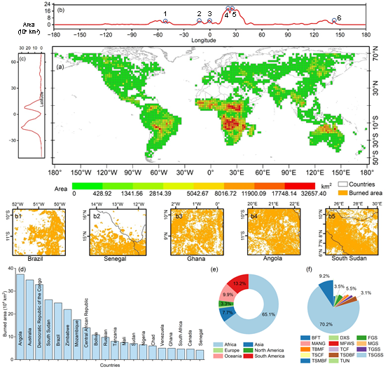 图1. 2024年全球火灾燃烧面积的时空分布特征