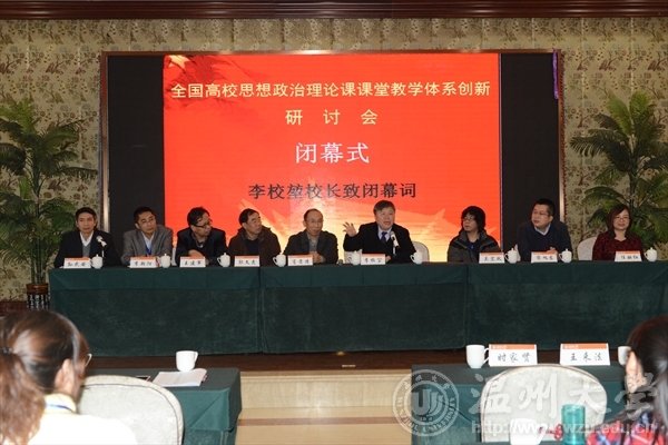 12月13日,由温州大学马克思主义学院和教育部《思想理论教育导刊》编辑部联合主办的“全国高校思想政治理论课课堂教学体系创新研讨会”在温州隆重闭幕。校长李校堃出席闭幕式并作重要讲话。校党委林娟娟副书记陪同与会专家观摩了12日下午举行的温州大学第三届“溯初杯”思政理论课知识竞赛教学活动。 研讨会于12月12日上午在我校育英图书馆报告厅开幕,来自全国88所高校的近200名专家、学者汇聚一堂,围绕中央宣传部、教育部印发的《普通高校思想政治理论课建设体系创新计划》文件精神,共同交流探讨进一步创新高校思想政治理论课课堂教学体系的有效途径和方法。