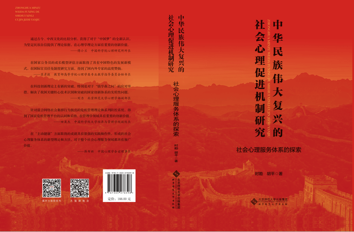 时勘教授的获奖成果为其主持国家社会科学基金重大项目“中华民族伟大复兴的社会心理促进机制研究”结题所获得的重要成果,该成果为进一步促进“健康中国行动”、深入开展社会心理服务体系建设的研究和实践工作做出了重要贡献。