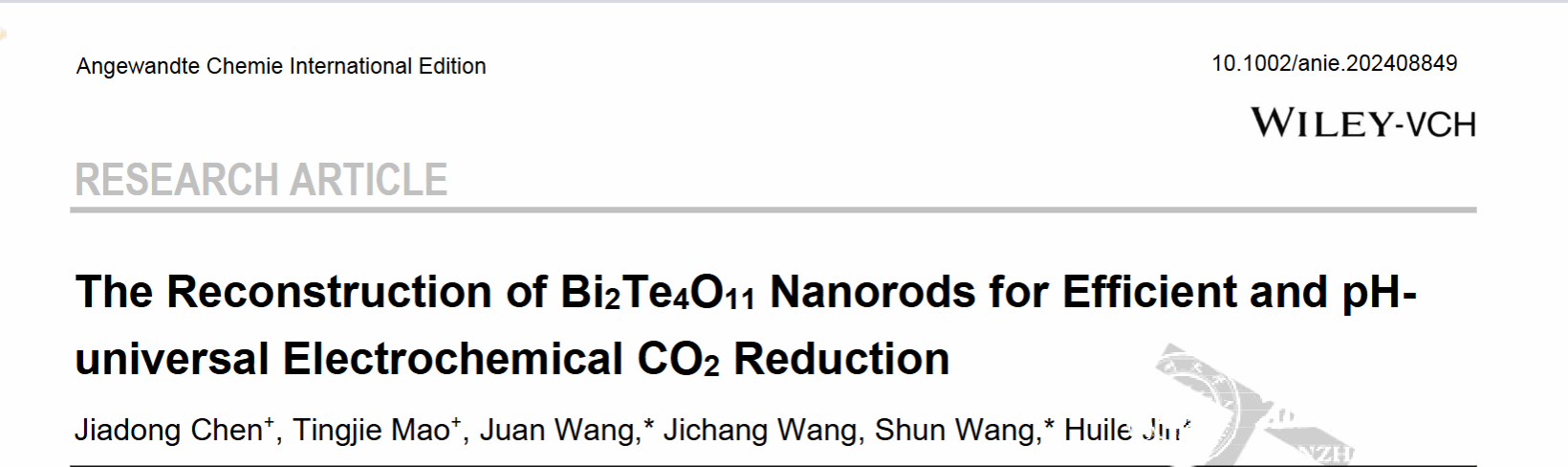 近日,我校王舜/金辉乐/王娟团队在国际顶级期刊《Angew. Chem. Int. Ed.》发表题为“The Reconstruction of Bi2Te4O11 Nanorods for Efficient and pH-universal Electrochemical CO2 Reduction”的论文。在这项工作中,通过在CO2RR条件下原位重构Bi2Te4O11 NRs来开发Te修饰的Bi纳米棒(Te-Bi NRs)。使用原位X射线衍射(XRD)和原位拉曼光谱对CO2RR过程中Bi2Te4O11 NRs的复杂重构过程进行了全面分析。该分析揭示了三个不同的步骤:Bi2Te4O11的分解、Te/Bi相的形成和Te的溶解。Te-Bi NRs在CO2RR中对甲酸盐表现出非常高的性能,在所有pH条件下(酸性、中性和碱性)都表现出优异的选择性和稳定性。具体而言,在中性、碱性和酸性条件下的流动池反应器中,在300 mA cm-2的高电流密度下分别实现了高达94.3%、96.4%和91.0%的HCOOH法拉第效率,超过了工业要求(>200 mA cm-2)。值得注意的是,在这种高电流密度下,可以稳定运行120多个小时。结合了密度泛函理论(DFT)计算和原位红外光谱(ATR-FTIR)全面揭示了Te的存在会使得Bi位点的呈现出缺电子状态,从而增强*OCHO中间体的吸附强度,同时显著抑制竞争性HER和CO的产生。