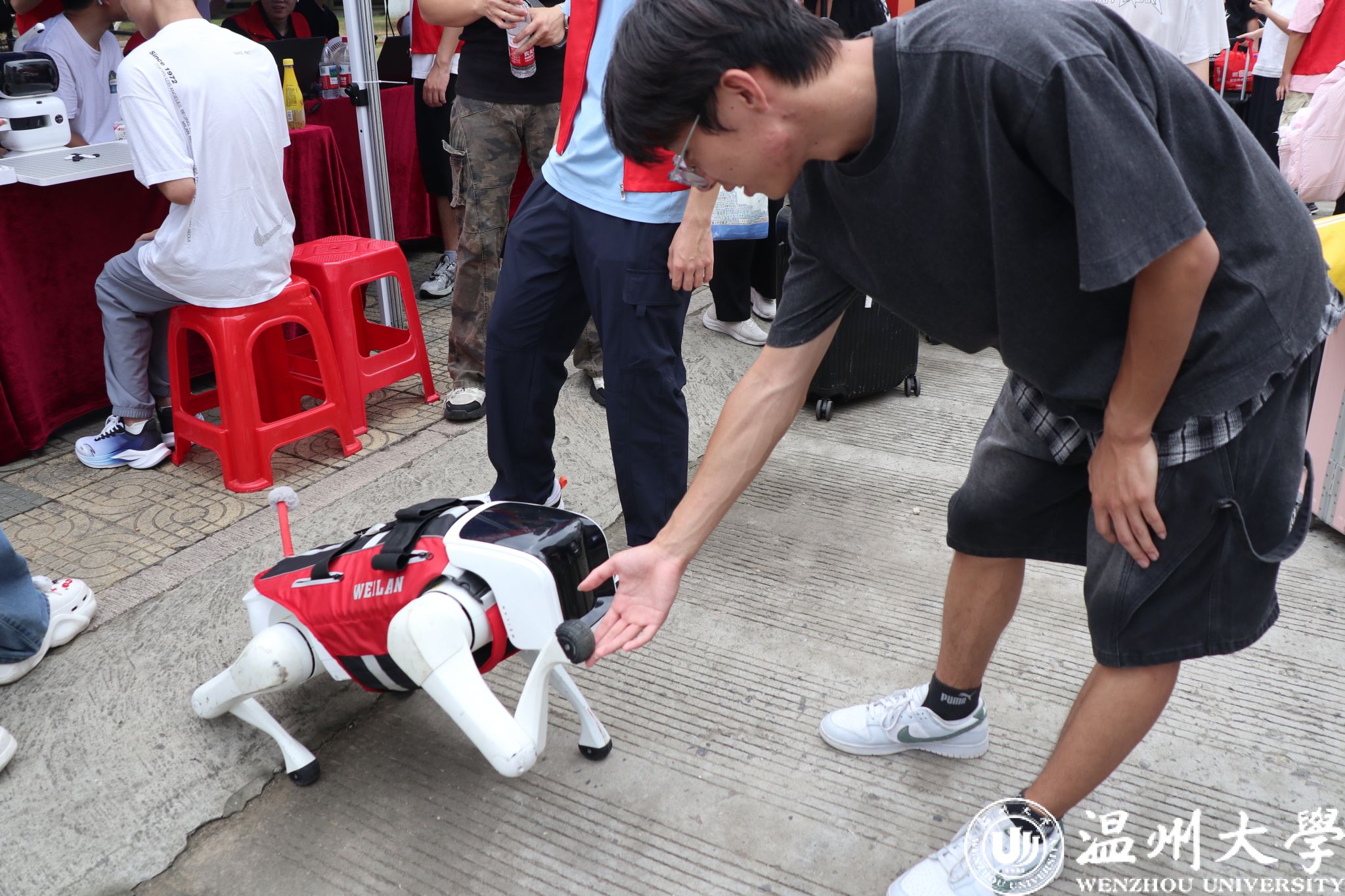 音乐学院将迎新现场变为育人课堂,用一场突如其来的“音乐快闪”活动,为全体教师送上节日的祝福,也为新生们开启了寓意深远的大学生涯“第一课”;法学院现场设置法官袍、律师袍、检察官服体验环节,让新生入学首日即沉浸式感受法律职业魅力,开启专业探索新征程;化学与材料工程学院聚焦个性化育人和拔尖人才培养目标,为每一位新加入的“小花菜“打造了一场融合科技感与链接感的迎新仪式;计算机与人工智能学院报到现场涌动着别样的“科技暖流”,学院研发的“AI职得”数字辅导员正式“履职”,以智能机器狗、“元萝卜”下棋机器人等科技产品为纽带,为新生开启了一场沉浸式的“科技初体验”;体育与健康学院2025年新设立专业,全省唯一一个足球运动本科专业在今天迎来了首批新生,他们通过迎新现场的小型球门,大显身手,精准命中,用精美的弧度踢开大学生活的大门;人文学院安排了“先锋室友”走访新生寝室的活动,学长学姐们用温暖的关心话语与实用的校园生活指南,将“传承人文精神”的院训精神融入点滴关怀。