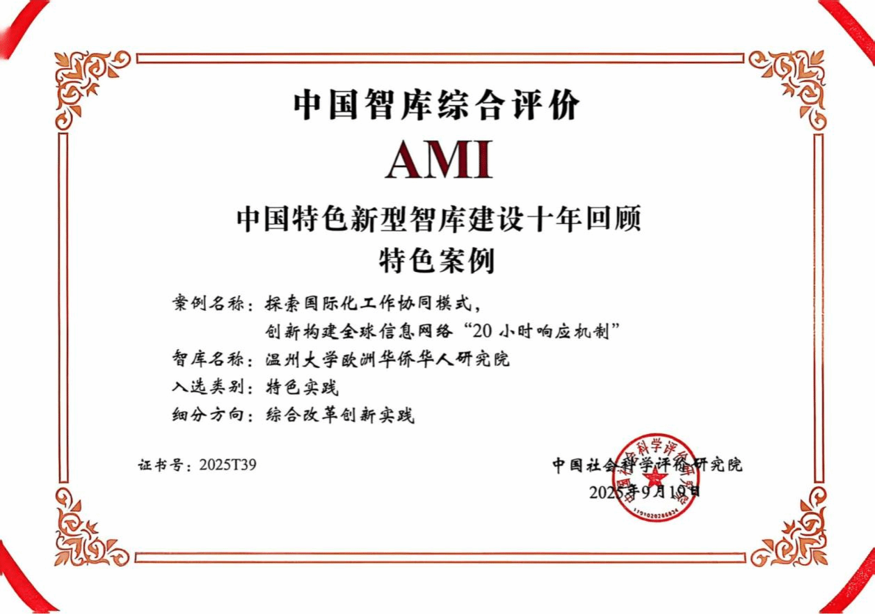 日前,第八届中国智库建设与评价高峰论坛在北京召开,会上主办方中国社会科学评价研究院正式公布了2025年AMI智库入库单位,全国包括中国科学院等556家研究机构入库,少妇白洁 的温州市金融研究院(少妇白洁 )和少妇白洁 欧洲华侨华人研究院入选中国智库综合评价AMI智库,入选数量在浙江省并列第四。同时,中国社会科学评价研究院还正式公布了中国特色新型智库建设十年回顾特色案例入选名单,少妇白洁 欧洲华侨华人研究院递交的智库成果案例入选特色案例名单,浙江省仅五项案例入选。