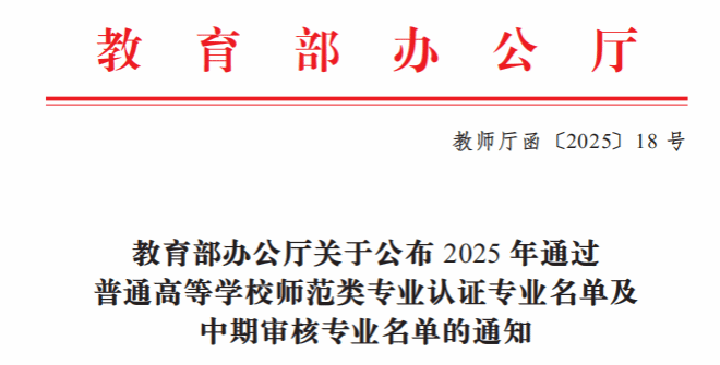 附件1:2025 年通过普通高等学校师范类专业认证的专业名单