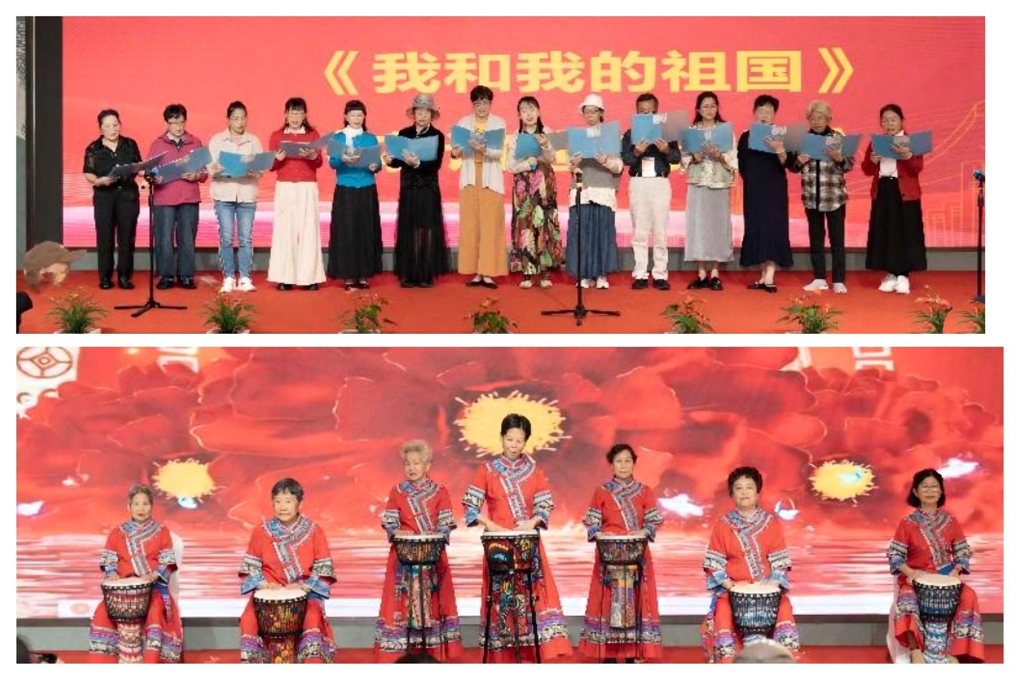 祝寿会特邀学校老同志声乐合唱小组演唱《我和我的祖国》《友谊地久天长》两首“岁月金曲”,为伙伴们献上祝福。此外,泰康之家·瓯园的非洲鼓韵俱乐部成员也受邀带来居民风采展示,表达银龄友人的美好祝愿。