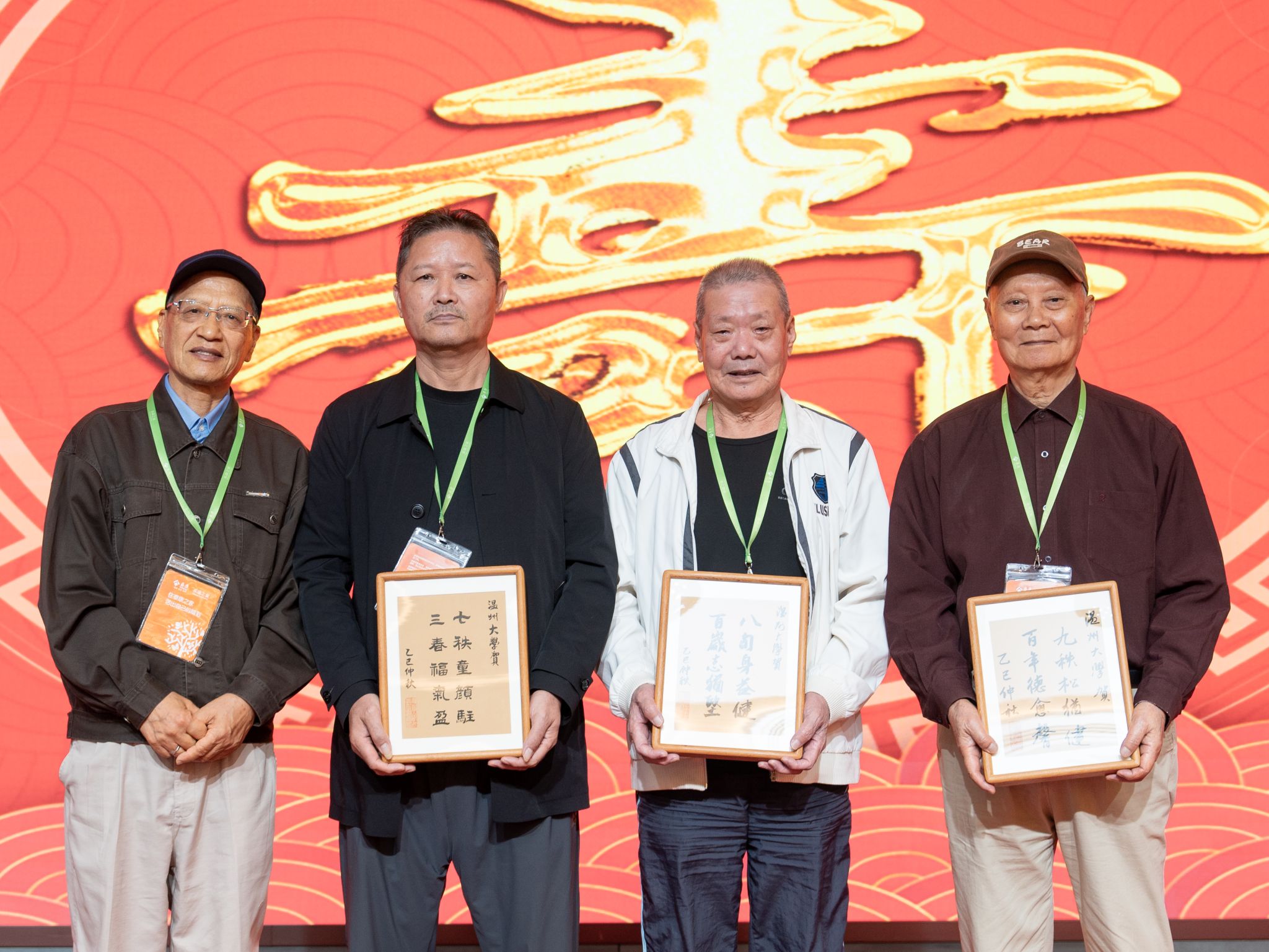言语传情,书画表意。为表达对寿星们的敬意,学校老干部书画院自暑假起便精心筹备,组织多位老同志历时十多天挥毫泼墨,共为本次祝寿会书写了87份贺寿词作为特别礼物。每一幅作品都凝聚着老书法爱好者对岁月的感悟与对寿星的真挚祝福。祝寿会上,离退休教职工协会副会长张汝潮老师向寿星代表赠送了这份满载心意的礼物。