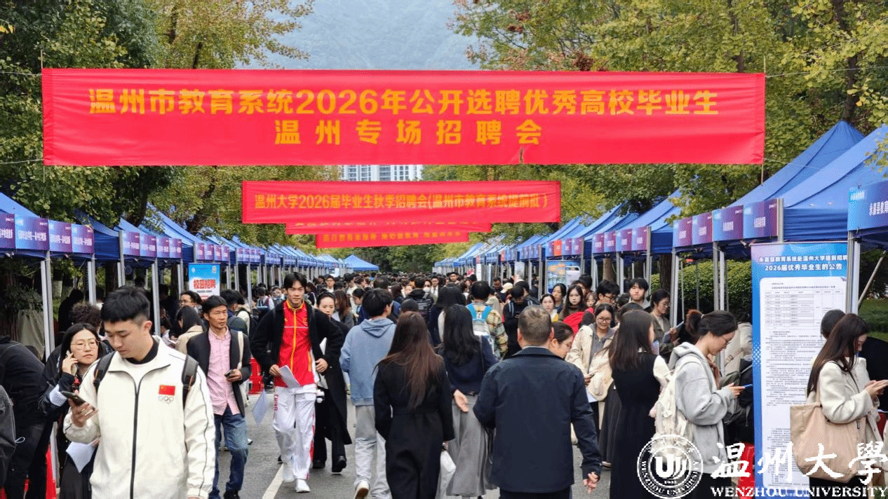 为深入贯彻落实“人才强教”战略,服务温州打造区域教育高地,推动高校毕业生更高质量充分就业,11月5日,由温州市教育局与温州大学联合主办的“温州市教育系统2026年公开选聘优秀高校毕业生温州专场招聘会”在温州大学大学生活动中心成功举办。