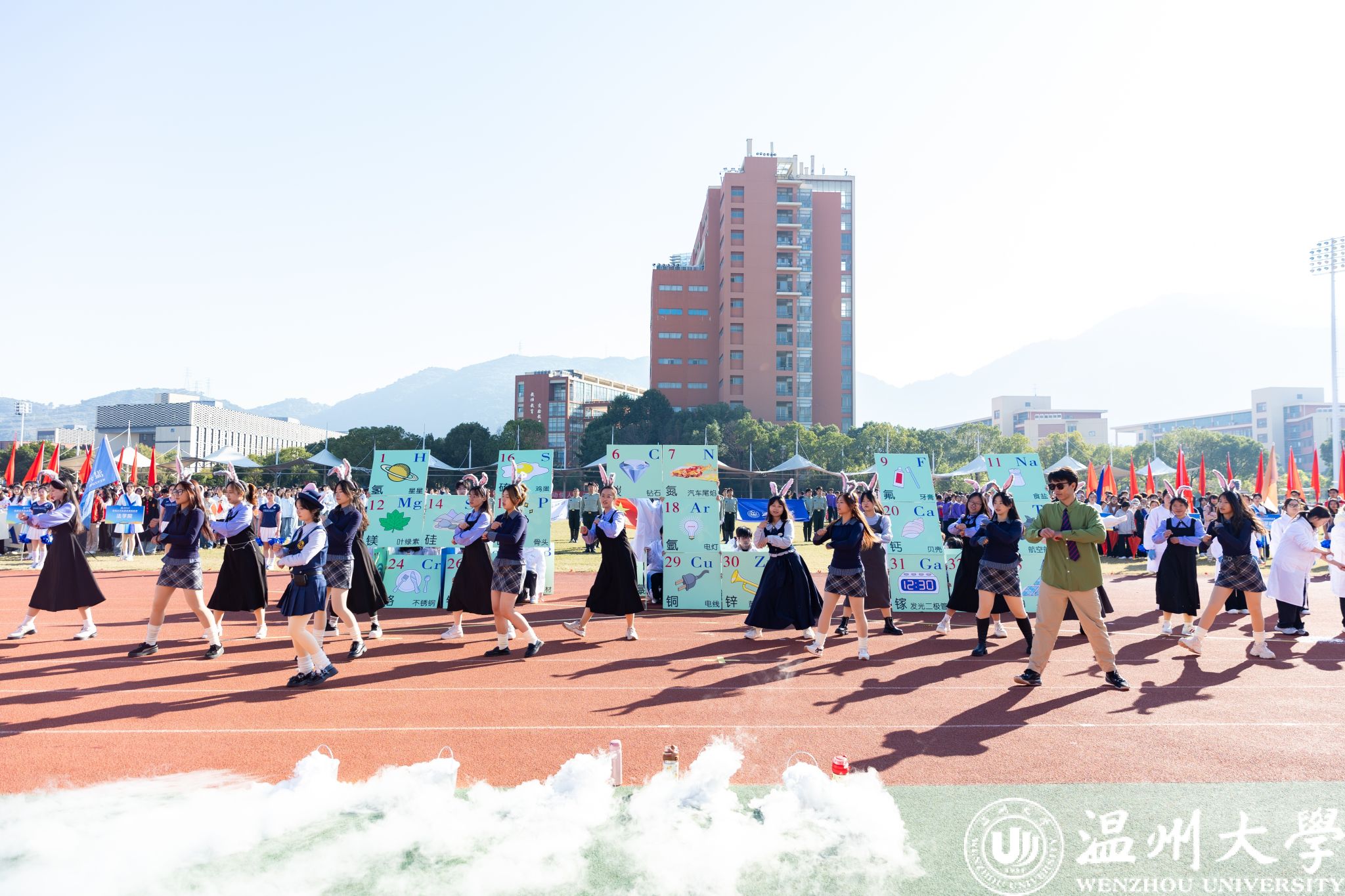 各学院方阵依次走过主席台,创意纷呈间尽显学院独特底蕴与昂扬风采。有的学院紧扣专业特色巧思编排,将学科魅力与文化内涵融入展示之中;有的学院学子身着绚丽民族服饰,以挺拔姿态诠释团结奋进的精神内核。全场学子精神抖擞、口号铿锵,以饱满昂扬的姿态,生动彰显出温大学子的蓬勃朝气与奋进斗志。