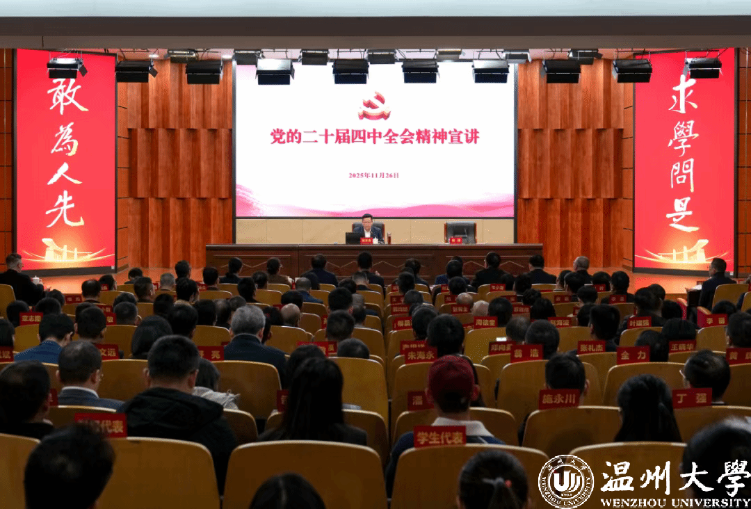 11月26日,市委副书记、市长张文杰来到温州大学,向师生们宣讲党的二十届四中全会精神。