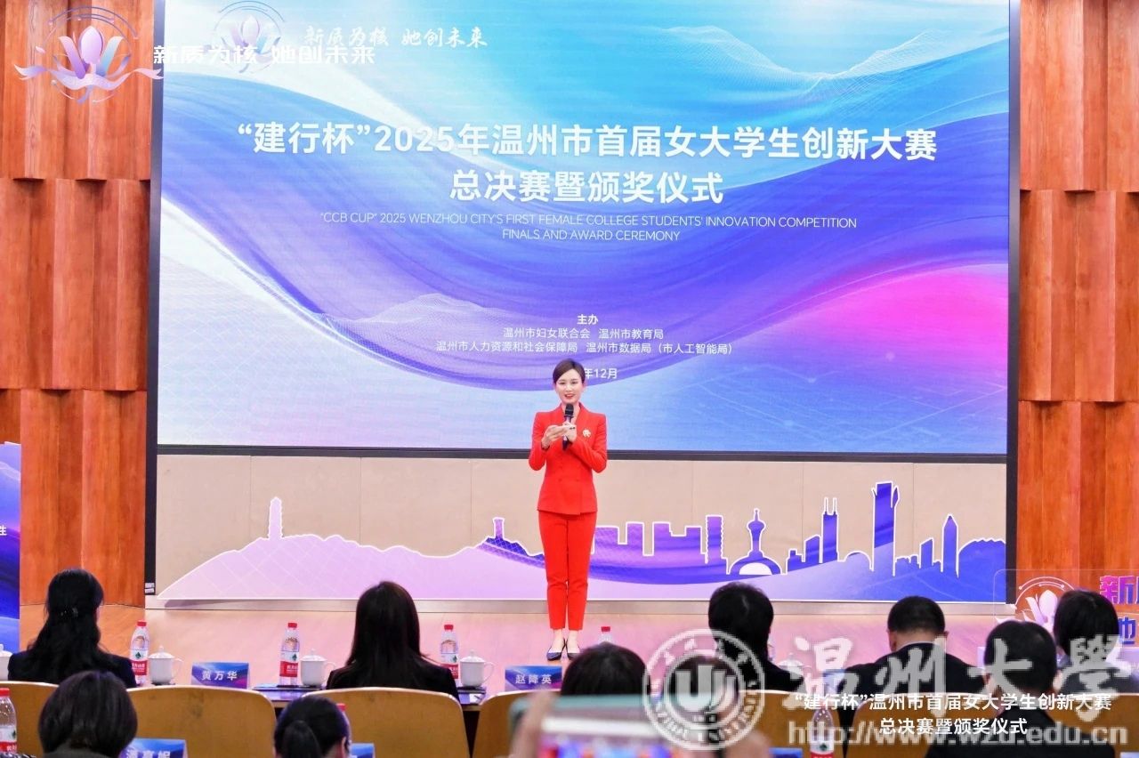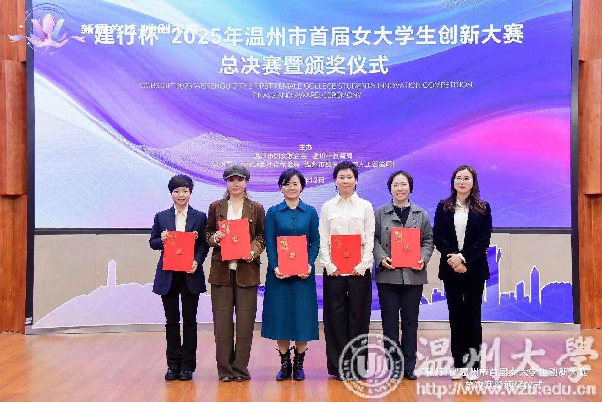 “新质为核,她创未来”。12月2日,“建行杯”2025年温州市首届女大学生创新大赛总决赛暨颁奖仪式在温州大学岩松堂雁山厅隆重举行。经过激烈角逐,“宫安凝——靶向抗炎修复复合凝胶在宫腔粘连治疗中的创新应用”项目和“楦优,童无忧——基于AI磨合度算法的儿童足弓发育适配鞋楦领跑者”项目分别斩获本次大赛本研生组和专科生组金奖。