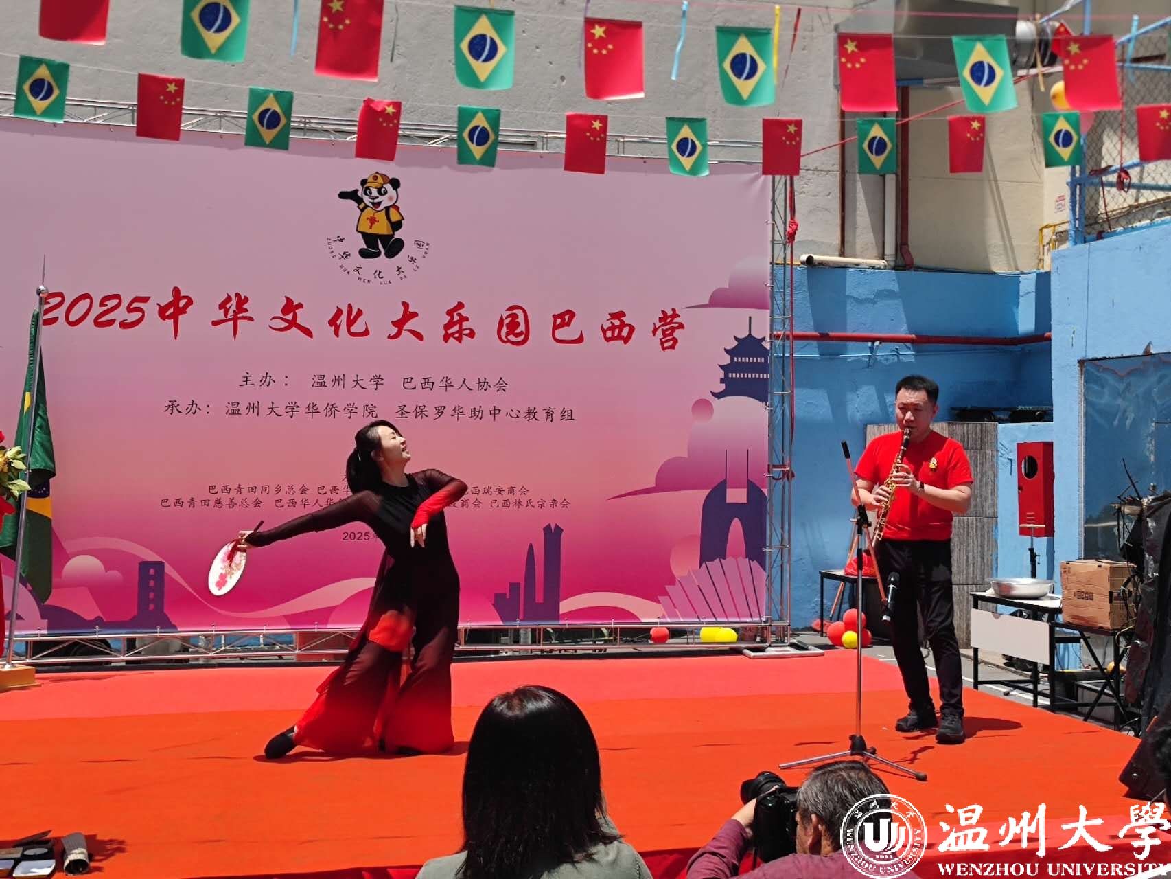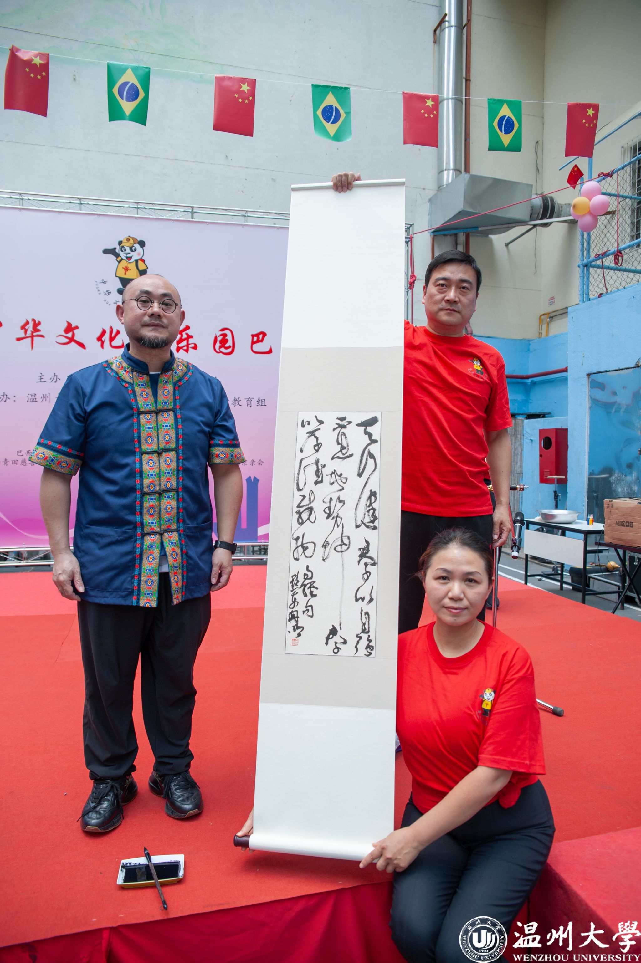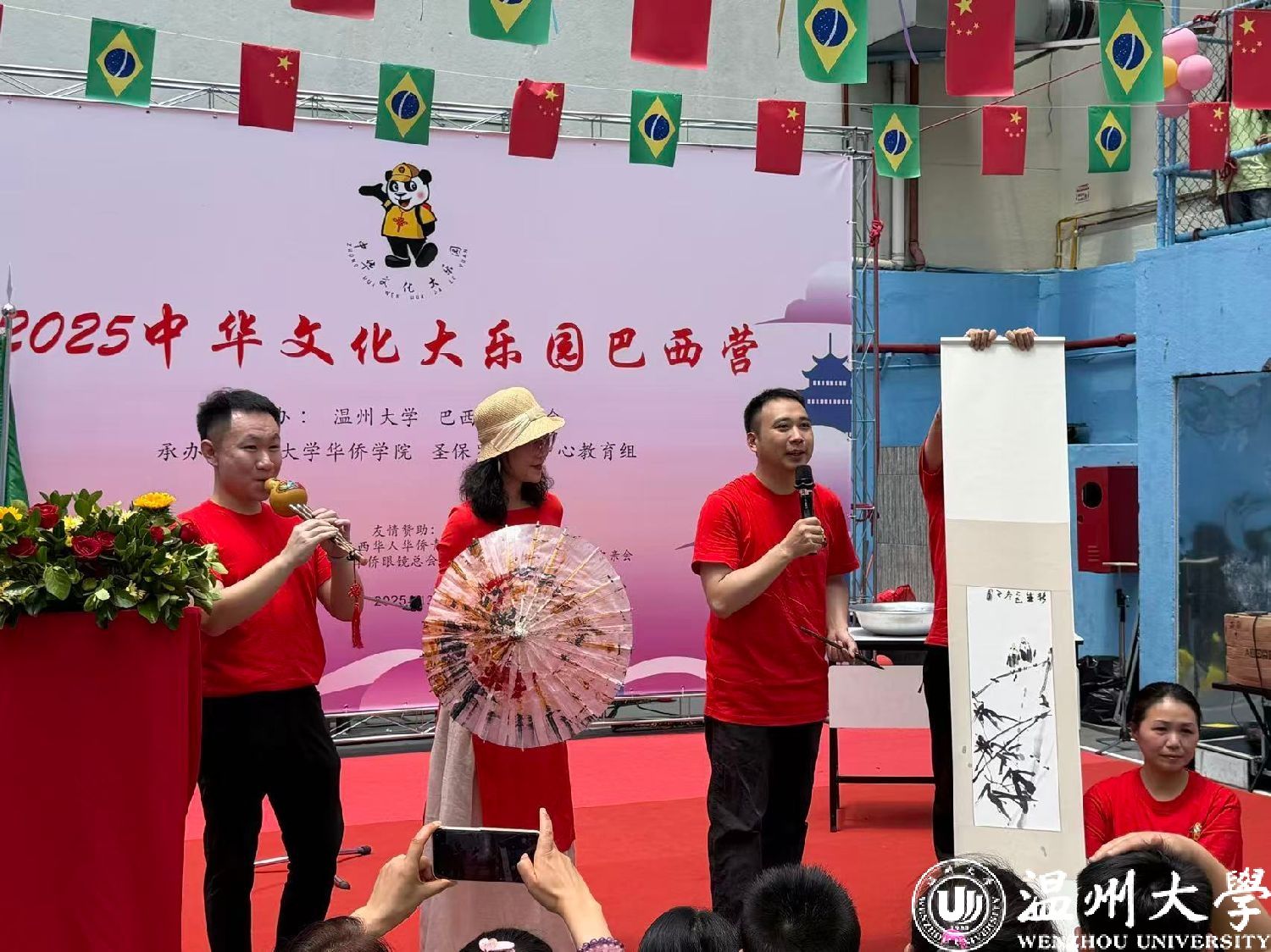 “2025中华文化大乐园巴西营”活动由温州大学和巴西华人协会联合主办,温州大学华侨学院、圣保罗华助中心教育组承办。活动在圣保罗德馨双语学校举行,7所巴西华文学校的师生参与活动。在为期一周的活动中,来自温州大学的14名教师将讲授中华礼仪文化、书法、武术、戏曲、汉服秀、中国舞蹈、舞龙、儿童剧、葫芦丝、中国画、中华时尚设计与表演、扎染艺术等丰富课程,带领华裔青少年深入感受中华文化的深厚底蕴。
