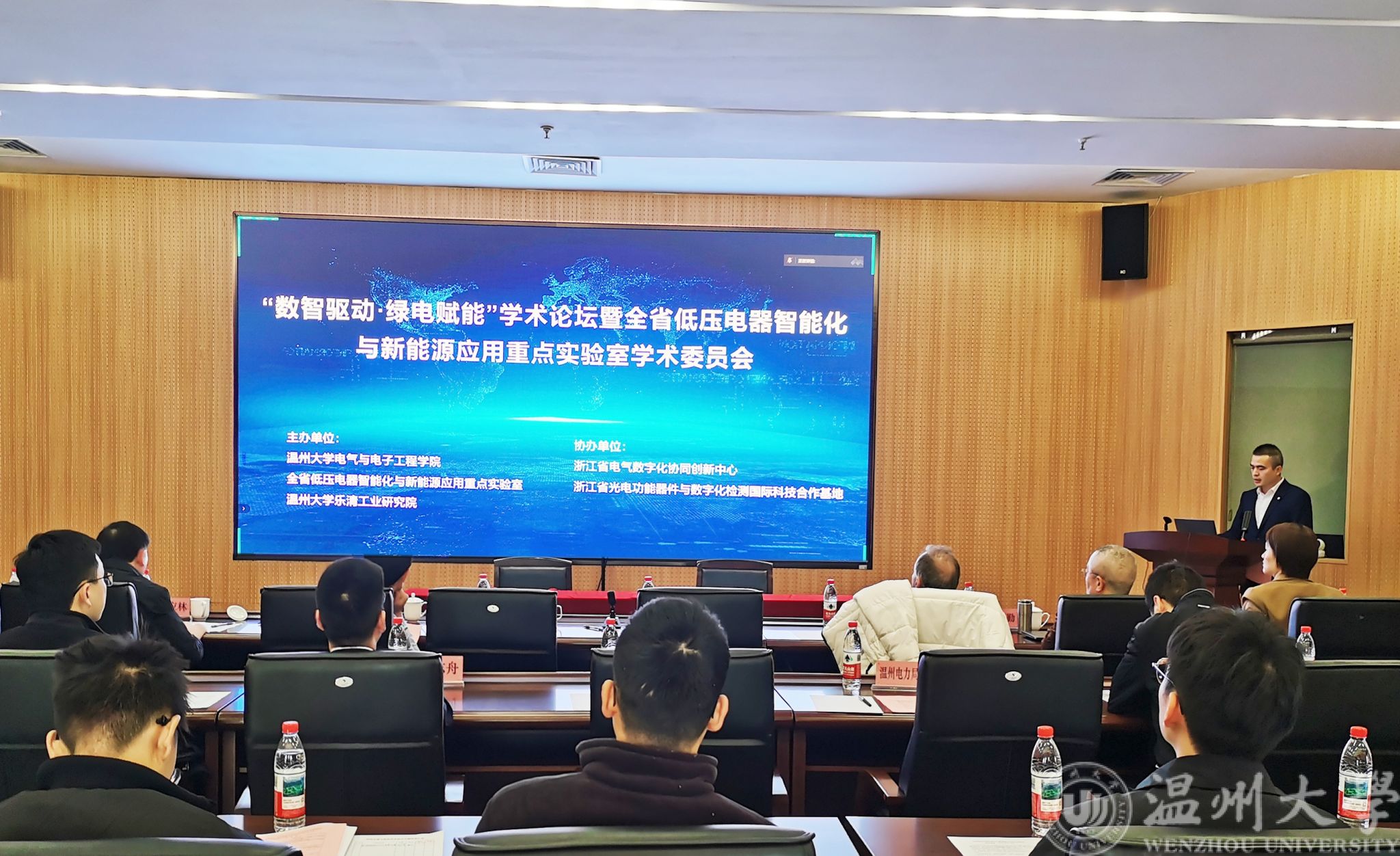 12月6日,由温州大学电气与电子工程学院、全省低压电器智能化与新能源应用重点实验室、温州大学乐清工业研究院共同主办,浙江省电气数字化协同创新中心、浙江省光电功能器件与数字化检测国际科技合作基地联合协办的“数智驱动·绿电赋能”学术论坛暨全省重点实验室学术委员会在学校岩松堂超豪厅隆重举行,温州大学党委副书记赵降英出席并致辞。丹麦技术科学院院士、浙江大学浣江实验室微电网研究中心主任Josep. M. Guerrero教授、浙江大学赵荣祥教授、西安交通大学李兴文教授、江南大学陈珂教授、西安交通大学贾要勤副教授等国内外知名学者、企业代表100余人受邀参会,共同探讨低压电器智能化与新能源应用的前沿技术与产业未来。