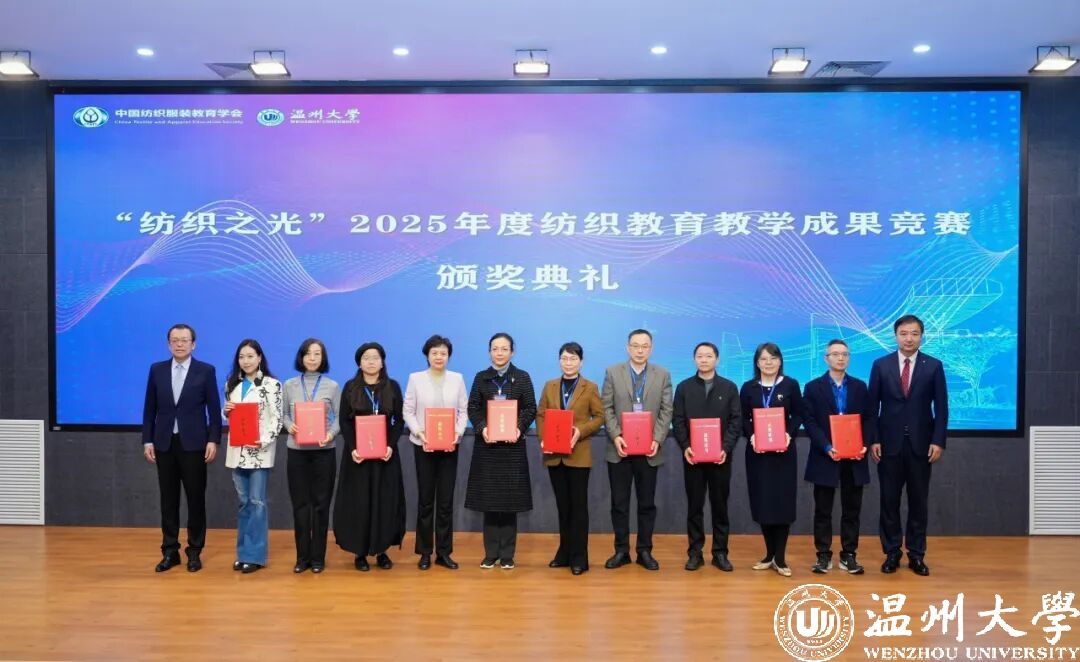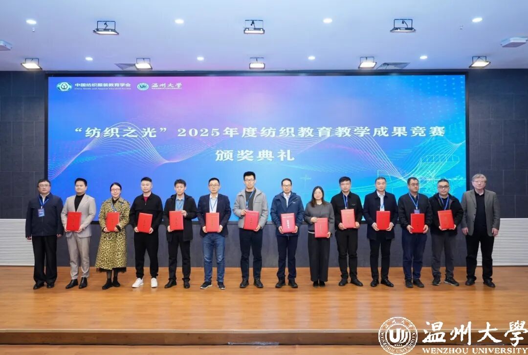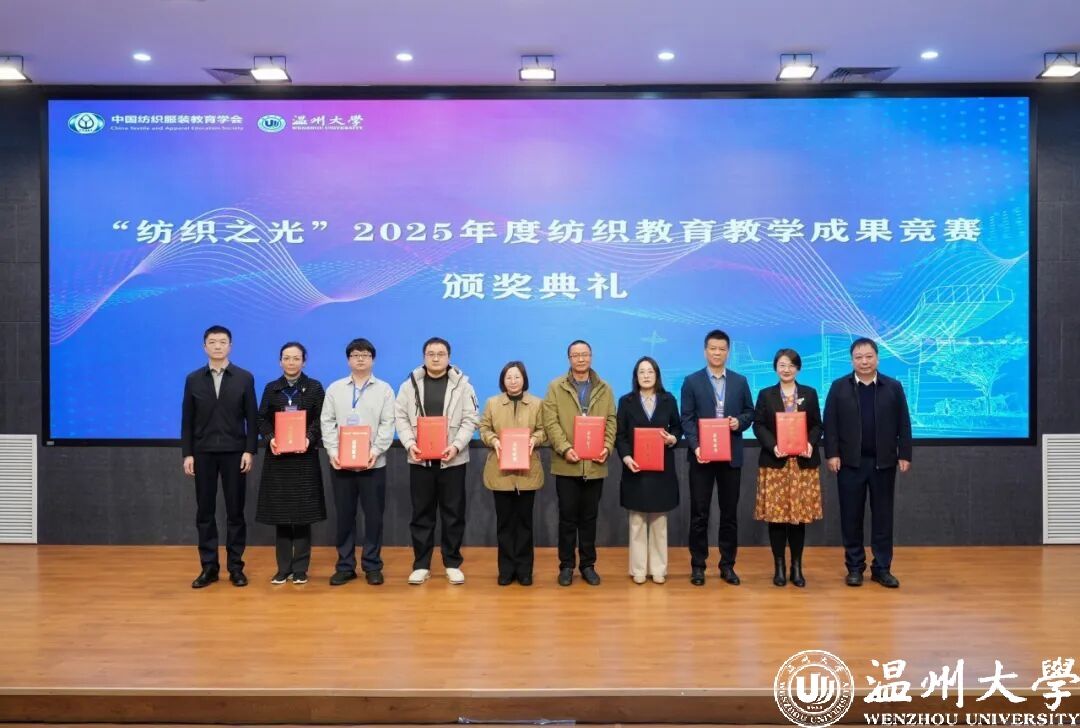 随后,大会举行了“纺织之光”2025 年度纺织教育教学成果竞赛颁奖典礼。该竞赛由纺织之光科技教育基金会资助,鼓励在教学改革、创新创业、人才培养等方面取得优秀成绩的教师。与会领导为获奖代表们颁发了获奖证书,现场气氛十分热烈。