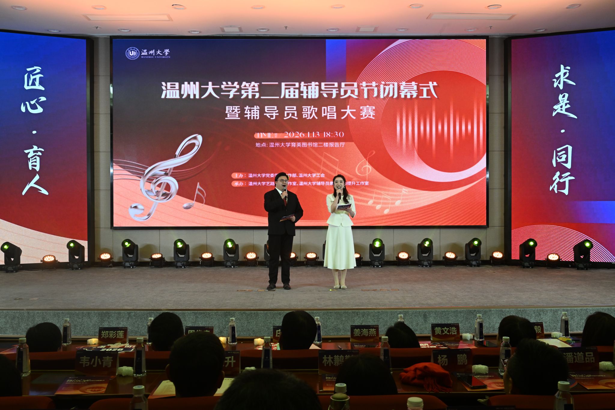 1月13日晚,温州大学第二届辅导员节闭幕式暨辅导员歌唱大赛在图书馆报告厅举行。校党委副书记庄兴忠出席活动,相关职能部门负责人、各学院副书记与全体辅导员齐聚一堂,共同见证年度育人成果,展望新征程。