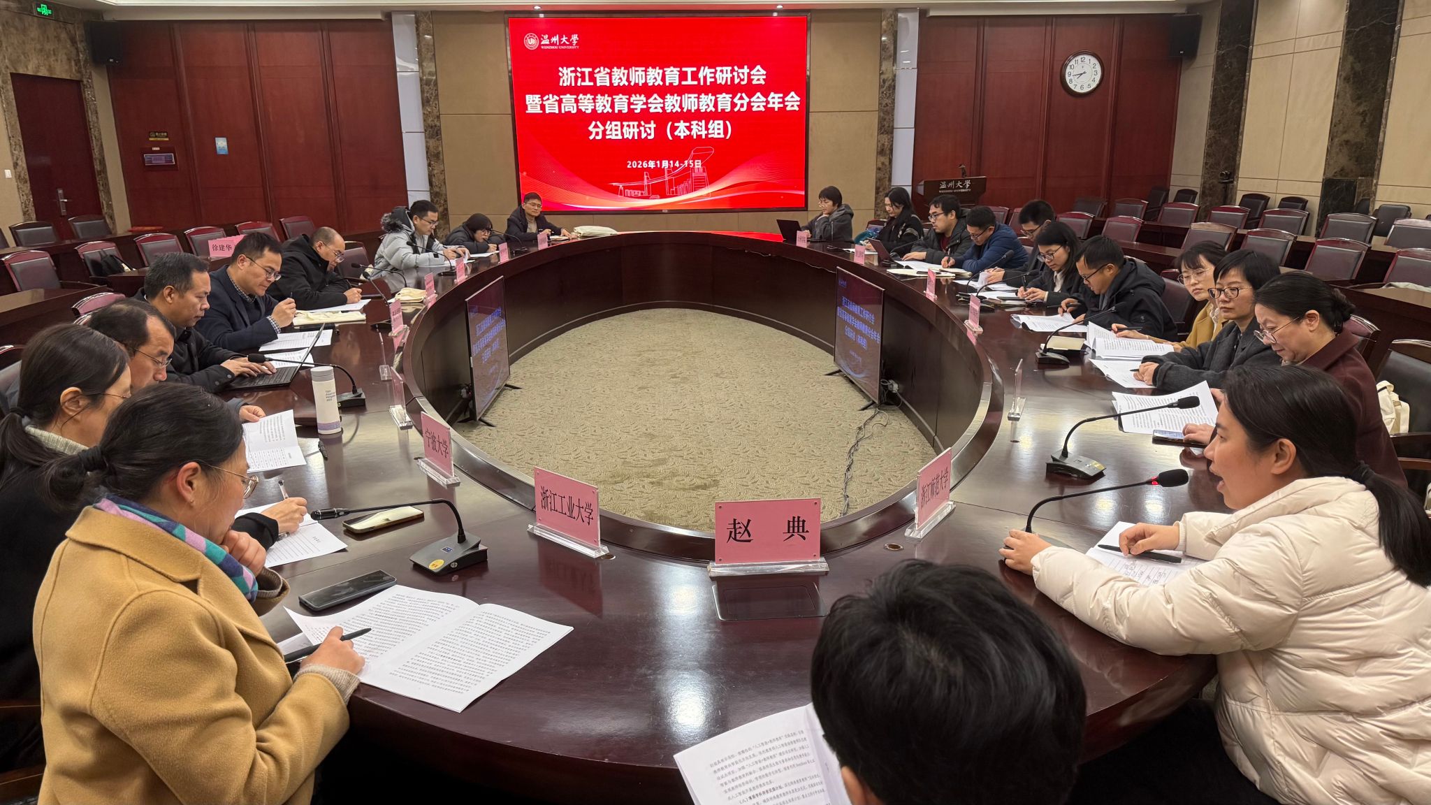 1月14-15日,浙江省教师教育工作研讨会暨浙江省高等教育学会教师教育分会年会在我校顺利召开。浙江省教育厅教师工作处副处长赵典、温州大学副校长王尧骏出席,教师教育分会会员单位、来自全省24所师范生培养院校的代表参加了本次会议。