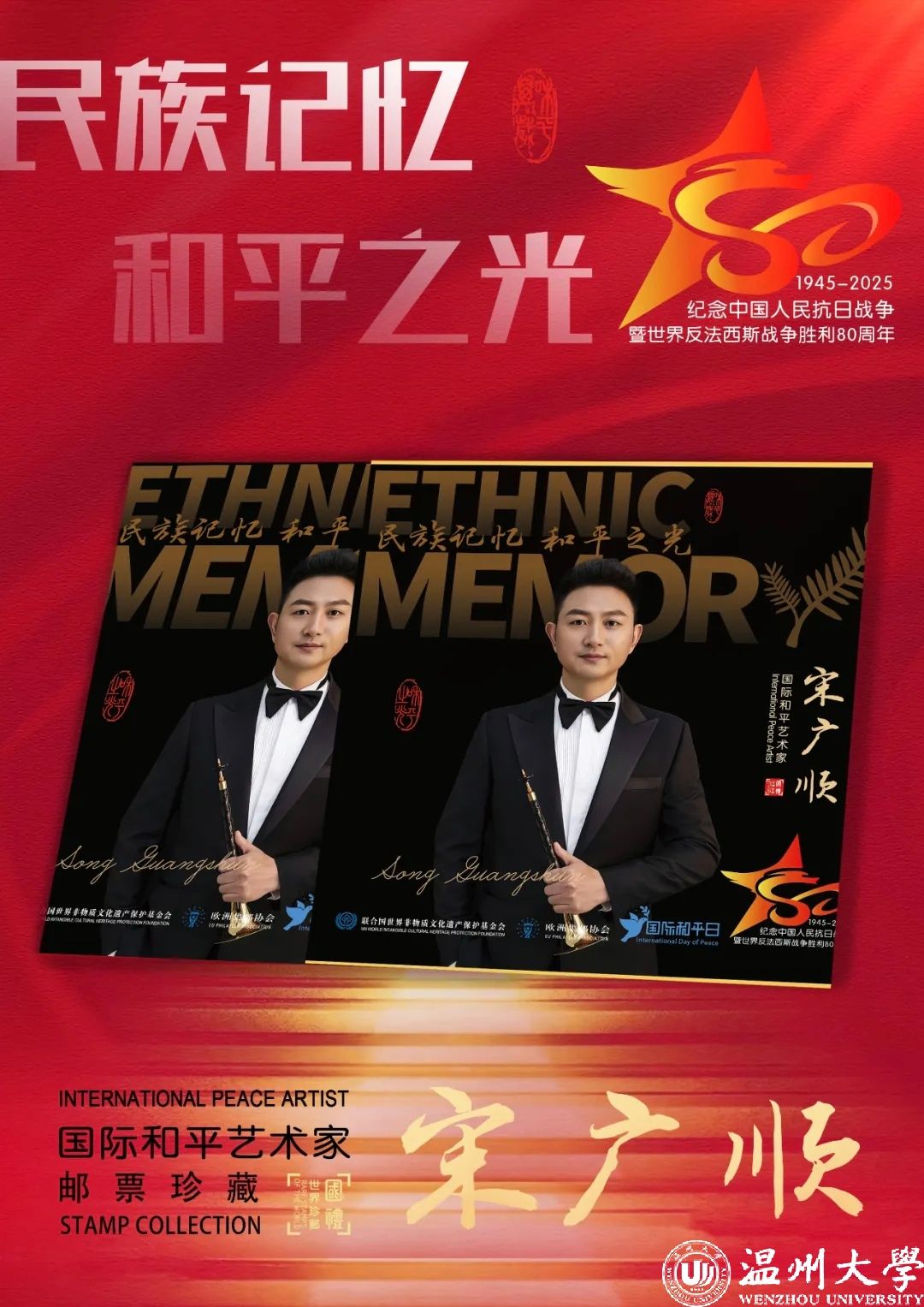 今年是中国人民抗日战争暨世界反法西斯战争胜利80周年,也是联合国成立80周年。日前,经中国国际文化艺术发展交流中心、欧洲集邮协会、山水丹青国际艺术中心等海内外权威文化机构联合推荐,民进会员、国家一级演奏员、温州大学音乐学院教授宋广顺被联合国世界非物质文化遗产保护基金会授予“国际和平艺术家”荣誉称号。