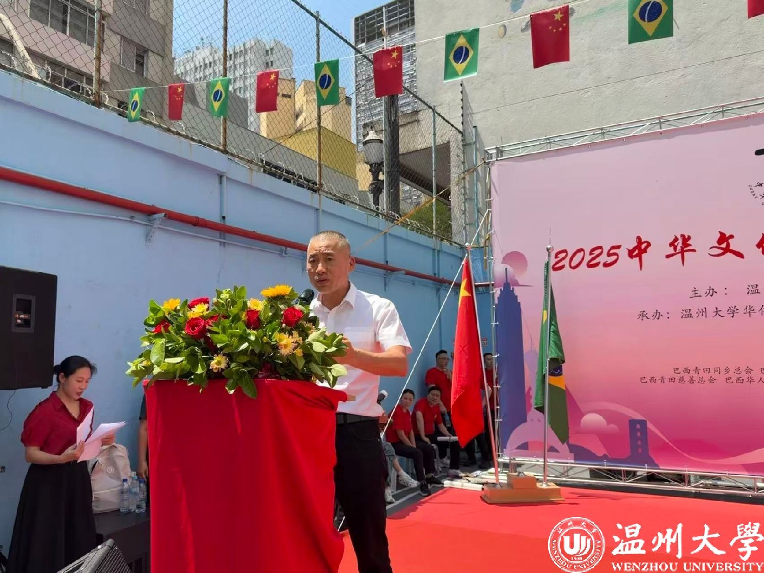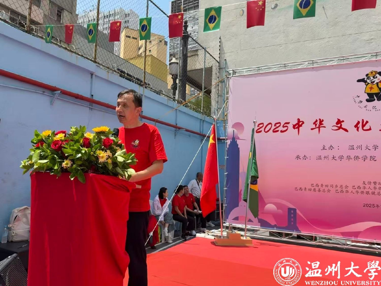 潘从义在致辞时表示,温州大学是一所“因侨而生、因侨而盛”的百年学府,坐落于著名侨乡温州,拥有92年的办学历史。他介绍,温州大学具有独特而鲜明的“侨”特色,并积极推进全球华文教育合作,已与全球50多个国家的300多所华文学校建立紧密联系。其中,本次活动举办地巴西德馨双语学校便是其重要合作伙伴。