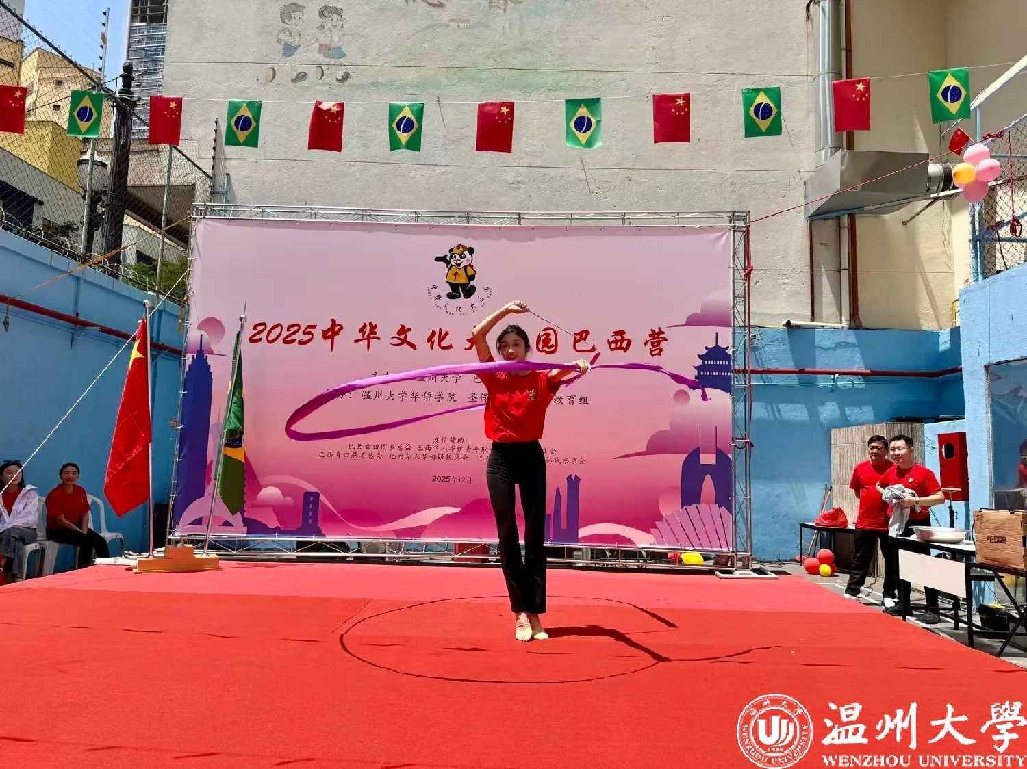 潘从义还表示,2025“中华文化大乐园”巴西营,是温州大学在海外华文教育领域的重要实践,活动将学校深厚的文化资源与教育积累,以生动活泼的方式直接传递给海外华裔青少年,让他们“看得见、摸得着、学得会、用得上”。潘从义勉励营员以归零心态学习,以开放胸怀交流,以传承担当践行,让中华文化在心中生根发芽。他向营员们发出诚挚邀请,欢迎未来通过港澳台侨联考报考温州大学,并表示将为考入温州大学的华裔学生提供全额奖学金。
