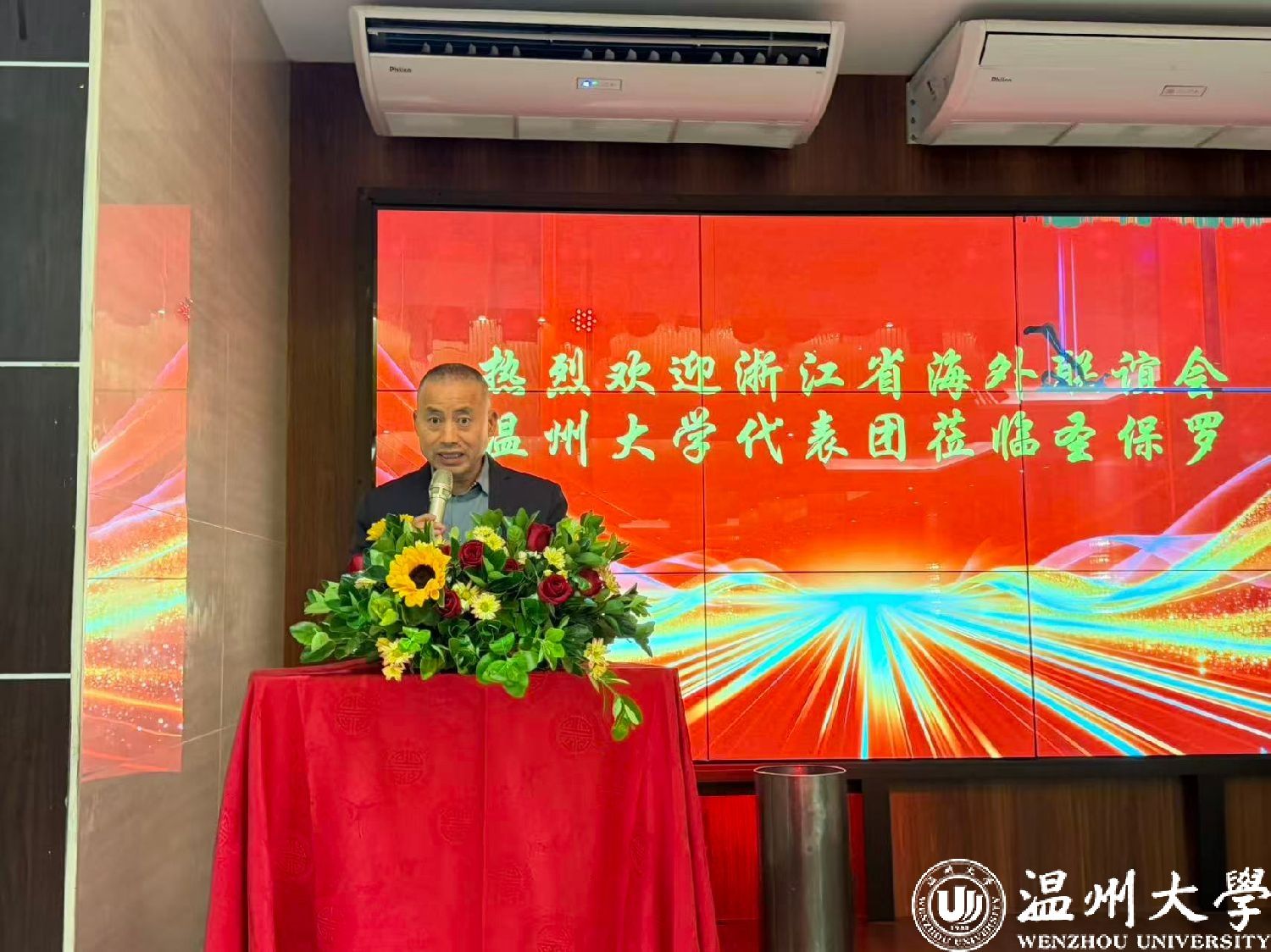 温州大学华侨学院包含丽院长深情讲述了跨越两万多公里抵达“最遥远国度”的旅程感受,并对几十年如一日往返中巴、爱国爱乡的侨领们表达了由衷的敬意与感动。她表示,踏上巴西土地感受到的浓浓乡情温暖人心,代表团成员是作为“来自祖籍国和家乡的亲人”前来相聚。包含丽介绍了温州大学作为侨乡高等学府的快速发展与国际影响力,特别是近年来在侨务研究、华文教育、服务全球华侨华人方面取得的显著成绩,包括为来自全球的7000多名华裔新生代提供学习机会,并承诺为符合条件的华侨学生提供奖学金。她强调,文化传承对于华裔新生代至关重要,文化自信是激发潜能的力量源泉。她代表全体教师郑重承诺,在未来七天的“文化大乐园”活动中,必将倾尽全力,将中华五千年的文化能量传递给孩子们,帮助他们成为优秀的华裔新生代,并期待在结营晚会上呈现令人震撼的教学成果。