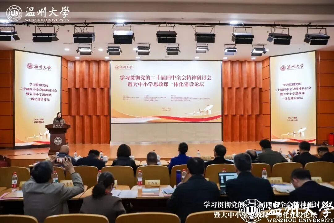 日前,由中共温州市委教育委员会、温州大学联合主办的“学习贯彻党的二十届四中全会精神研讨会暨大中小思政课一体化建设论坛”在温州大学举行。本次论坛旨在深入领会党的二十届四中全会核心要义,共同探讨推进大中小学思政课一体化建设的时代课题与实践路径。来自全国部分高校的马克思主义学院专家学者、思政课教师及研究生代表等共计百余人齐聚温州,共商思政教育协同创新大计。
