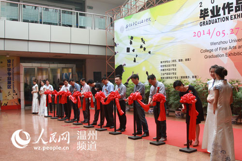 人民网温州5月27日电 今天上午,温州大学美术与设计学院2014届毕业作品展在温州市展览馆开展。本次共展出创作作品65幅、设计作品200余件,即日起至6月5日,市民均可前往参观。