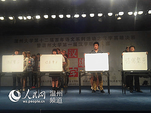 据悉,除了汉字英雄之外,温州大学百年语文系列活动还包括初上讲台、文化长廊等子活动。(黄雪意 曾蓓蕾) 相关链接: