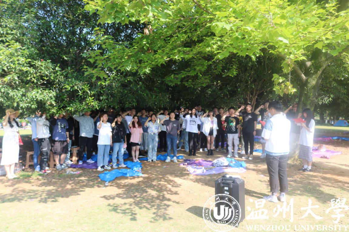 最后,全体人员笔直齐站,握起右拳,庄严的进行集体宣誓:在这建党一百周年之际,我以青春的名义宣誓:即使成功远在天边,道路崎岖多变,我也要勇往直前,不畏艰难;即使失败就在眼前,我也要坚守信念,挑战极限;脚踏实地,砥砺前行,将个人理想与社会理想结合起来,将个人的奋斗融入建设中国特色社会主义的时代大潮中去,为“中国梦”的实现贡献属于自己的力量。