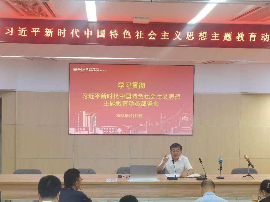 9月19日,我院在逸夫楼报告厅召开学习贯彻习近平新时代中国特色社会主义思想主题教育动员部署会暨新学期教职工大会,深入学习贯彻习近平总书记在主题教育工作会议上的重要讲话精神,对学院开展主题教育进行动员部署。