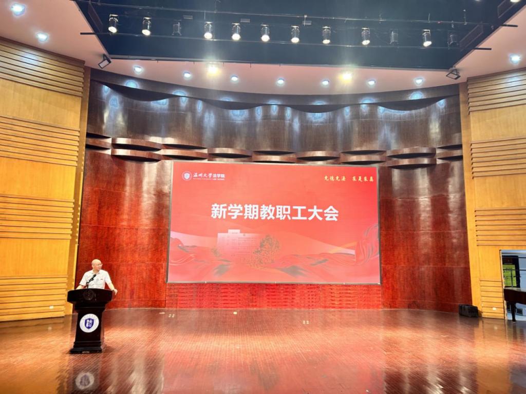 9月20日下午,温州大学法学院在南校区音乐厅召开新学期教职工大会暨学习贯彻习近平新时代中国特色社会主义思想主题教育动员部署会。本次会议由法学院党委书记林钦主持,法学院全体教职工参加会议。