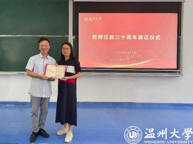 会上,全力书记传达了习近平总书记《致全国优秀教师代表的信》的文件精神,并引导全院教职工以人民教育家为榜样,始终牢记为党育人、为国育才的初心使命,主动担当起立德树人的光荣使命,把培育社会主义核心价值观贯穿教书育人的全过程。接着,全力书记向周艳副教授颁发了“教师任教三十周年”荣誉证书。