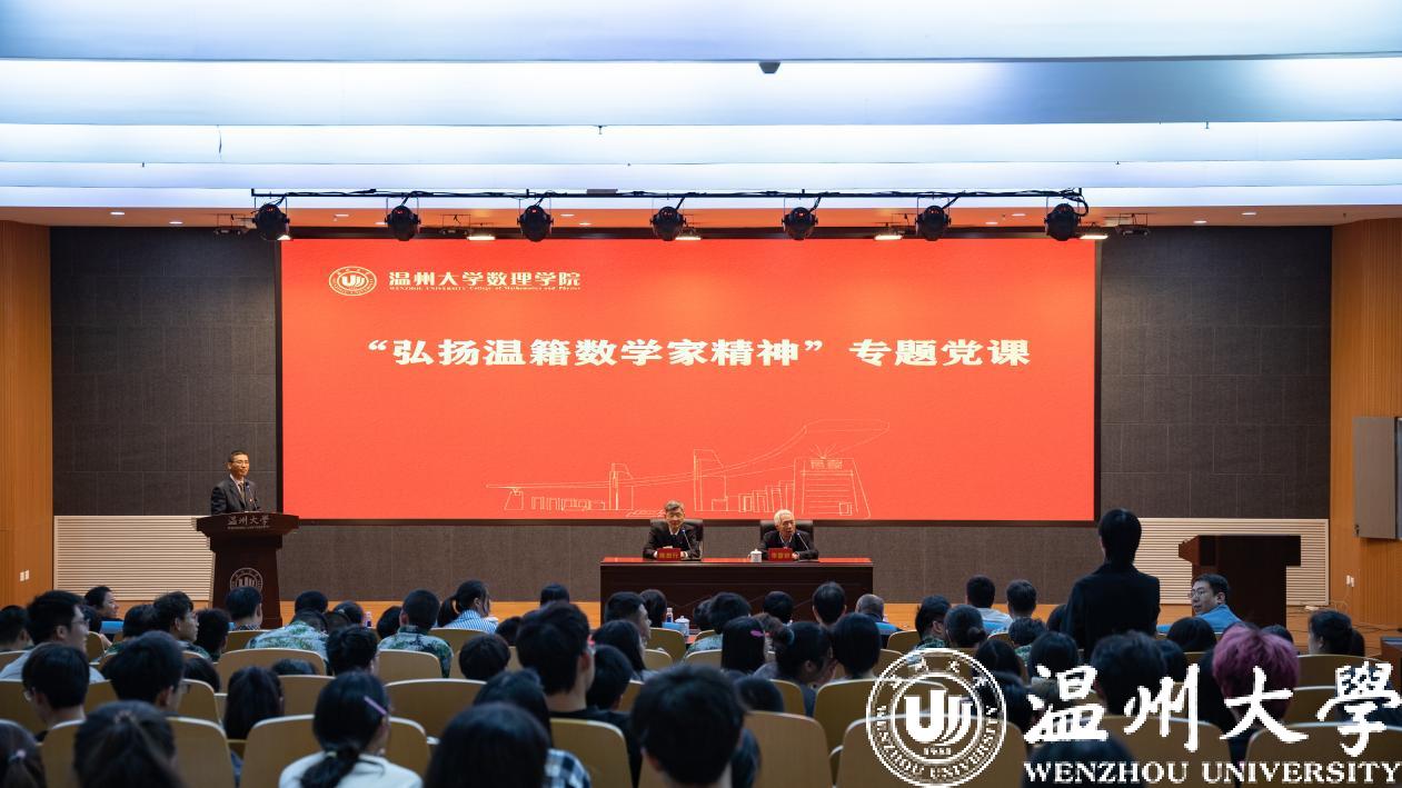 “党员专家,决不可以知识为奇货可居,向党讨价还价,必须毫无保留地、全心全意地献出自己的知识,为社会主义事业作出贡献……”10月14日下午,一场内容丰富,扎实又走心的主题党日活动在温州大学岩松堂举办。来自复旦大学的陈恕行、华宣积两位数学家、老党员,应邀为数理学院师生党员做“弘扬温籍数学家精神”专题党课。校党委副书记庄兴忠,数理学院领导,温籍数学家精神宣讲团成员,数理学院全体师生党员,苏步青学院学生代表参加。