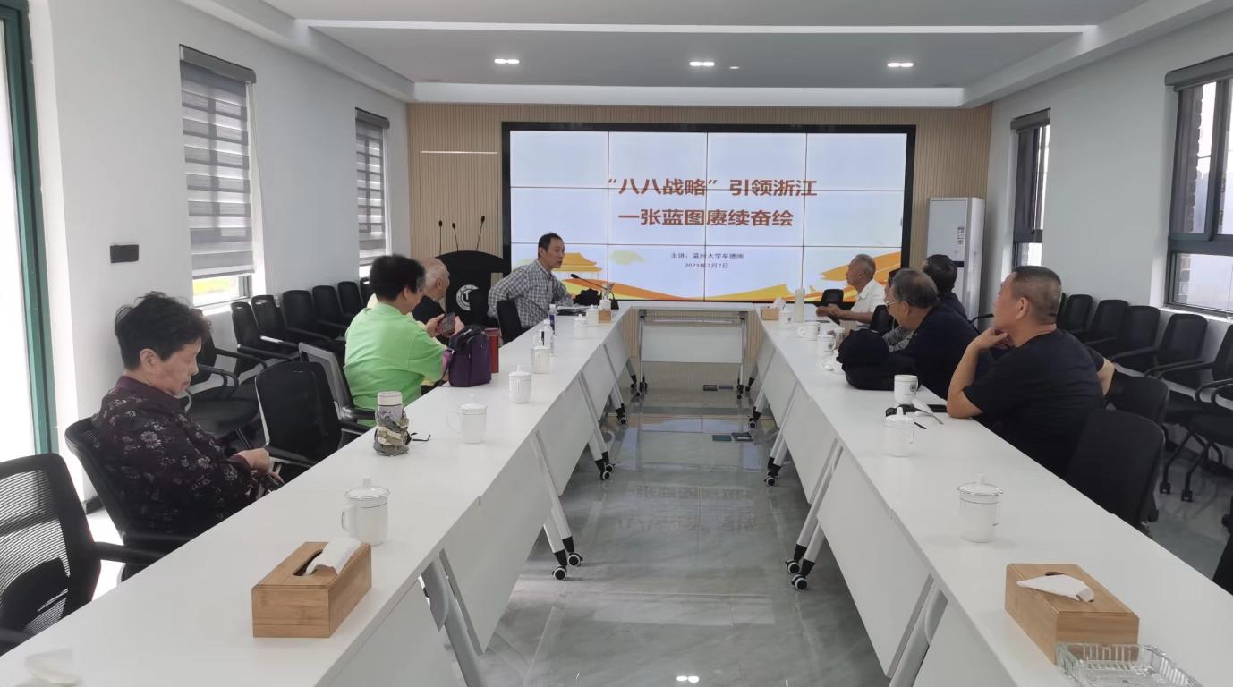随后,牟德刚为支部上《“八八战略”引领浙江 一张蓝图赓续奋绘》专题党课。党课从历史性关口的重大选择、跨越时空的思想传承、“八八战略”的实践伟力和一张蓝图绘到底等四个方面,带领大家深情回顾浙江实施“八八战略”的20年。认真听完党课,大家开展学习体会交流。支部党员杨义仁感言:“八八战略”目标明确,符合实际;贵在坚持,不另起炉灶,不标新立异,不折腾;创新不离基础,与时俱进,如虎添翼;走在前列,各方面成果丰硕。支部党员上官女深情地说到:“今天,我们进一步了解了‘八八战略’是2003年由时任浙江省委书记习近平同志带领,在历史性关口作出的重大决策,是‘跨越时空的思想传承’;二十年来浙江省委一张蓝图绘到底,取得了巨大成就;我们这些老党员是浙江‘改革开放’‘八八战略’实施的参与者、见证者与丰硕成果的享受者,能看到今日国家繁荣昌盛、浙江走在全国前列,是幸运幸福的;作为一名老党员,我要珍惜当下、坚持初心、保持本色,在推进中国式现代化的进程中,尽已所能、奉献力量,在新时代的美好时光中欢度晚年。”支部党员们一致认为,“八八战略”是在不断发展、不断贴合实践、不断进步的重要决策部署;坚持“八八战略”的指引,坚持一张蓝图绘到底,党和人民将创造更辉煌的成绩。